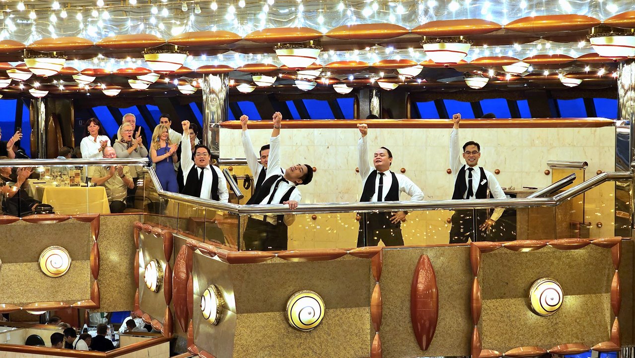 Aber was ist das? Plötzlich erklingt laute Musik und eine Truppe engagierter Kellner legt einen heißen Tanz aufs Parkett! Wie genial ist das denn? Alle Gäste und auch wir klatschen und feiern mit. Was für ein Entertainment! Wir haben soviel Spaß und freuen uns über die unverhoffte Dance-Show 🙂