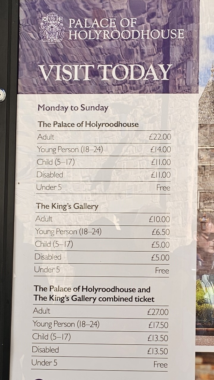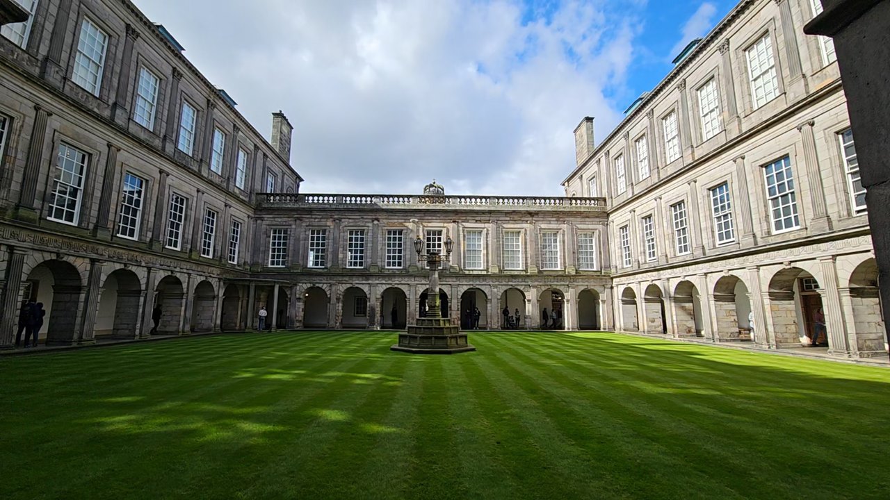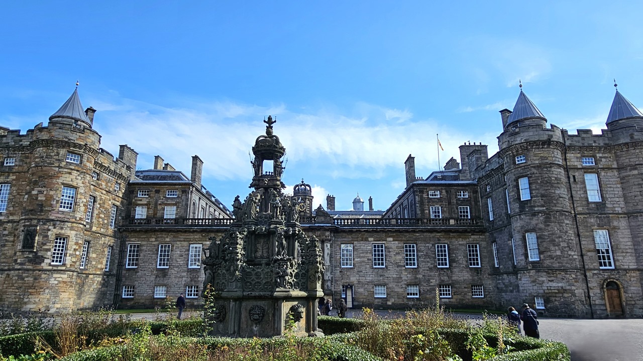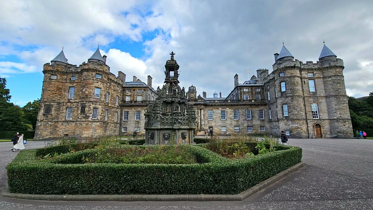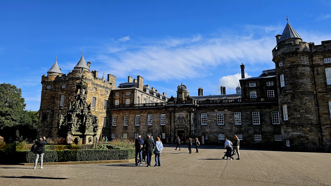 Und dazu müssen wir nur auf die andere Straßenseite gehen. Der Palace of Holyroodhouse oder auch Holyrood Palace ist die imposante offizielle Residenz der britischen Krone in Schottland. Hier wohnt der König, wenn er in Schottland verweilt. Seit den 1500er Jahren beherbergt das Schloss Könige und Königinnen des Landes.