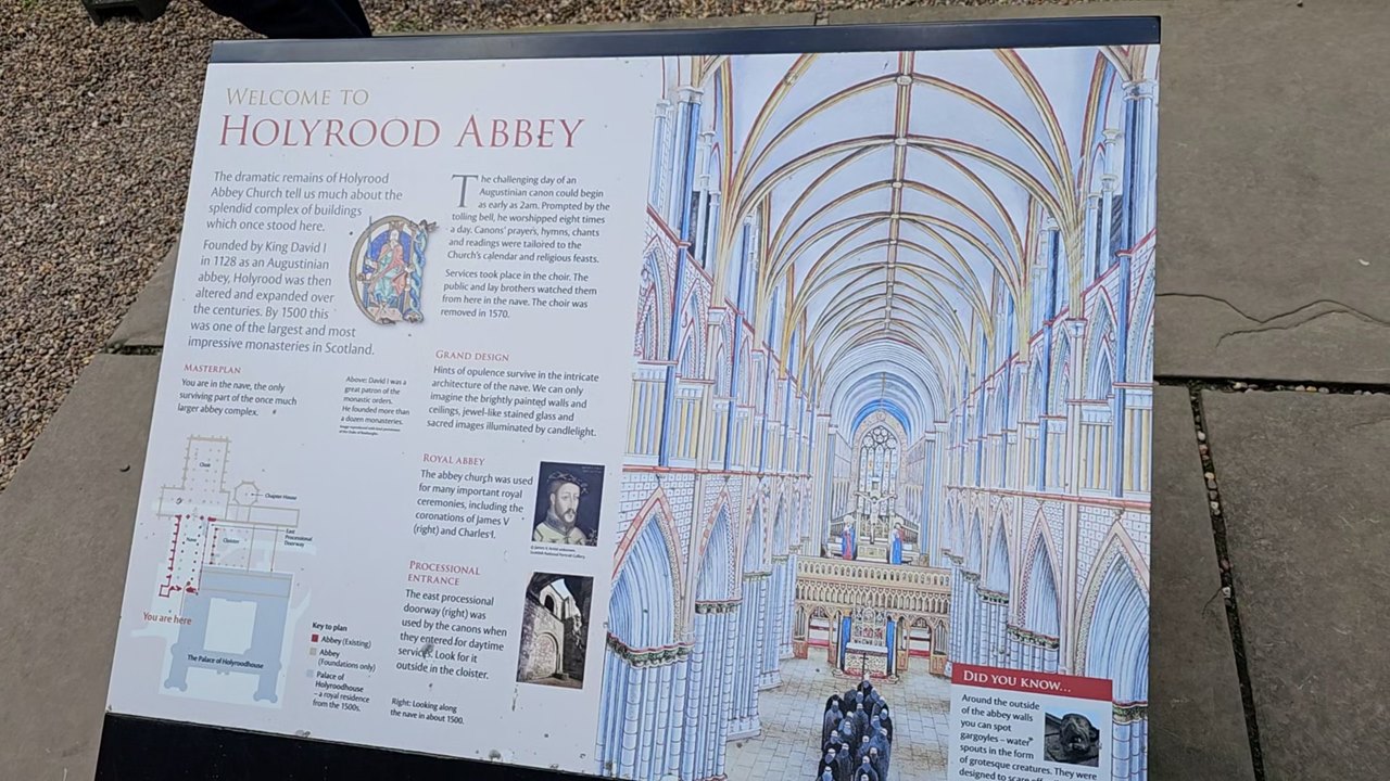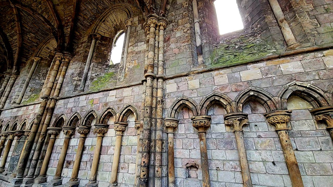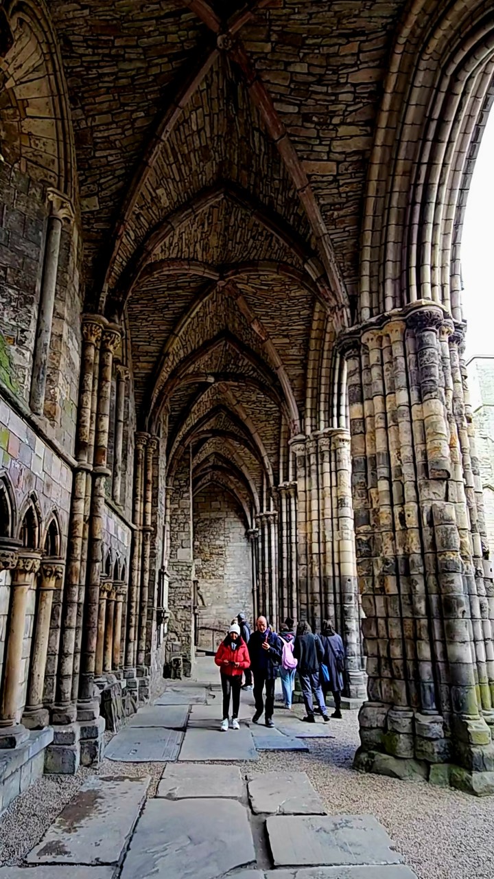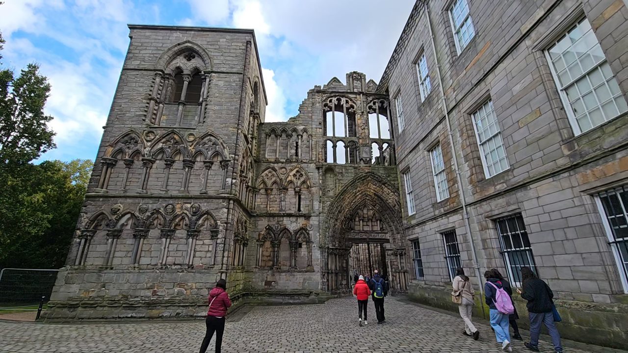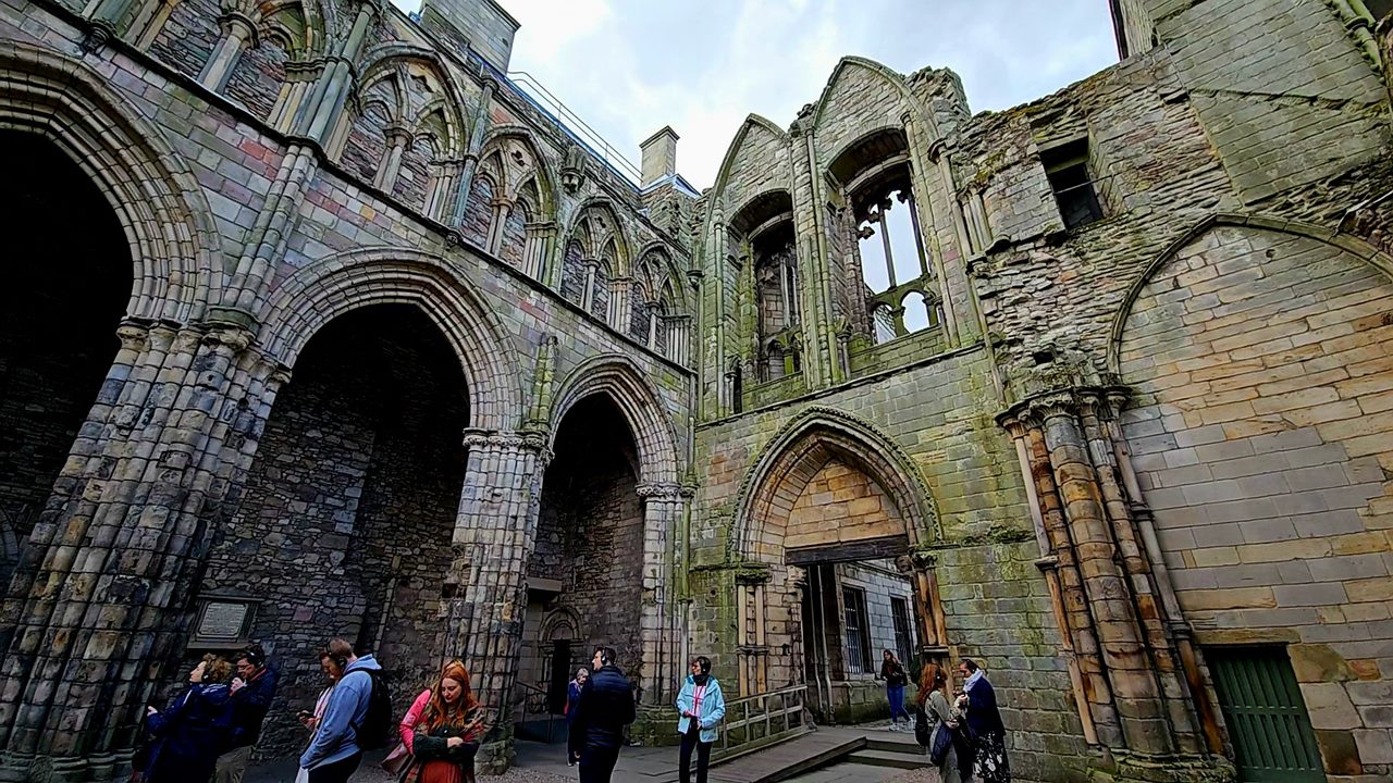 Nach ungefähr einer Stunde beenden wir unsere Schloss-Besichtigung und betreten die angrenzende Abtei. Diese stiftete King David I. im 12. Jahrhundert als Kloster. Die Ruinen der Holyrood Abbey stellen das älteste und romantischste Element im Holyrood Palace dar.