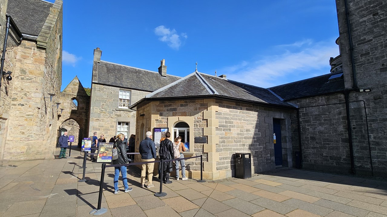 Wir betreten das Schloss und erhalten jeweils einen Audioguide. Ein Teil des Palastes ist für Touristen freigegeben und kann besichtigt werden. Darunter die historischen Gemächer von Mary Queen of Scots, der Speisesaal, der Thronsaal und die Galerie mit vielen Porträts schottischer Monarchen.