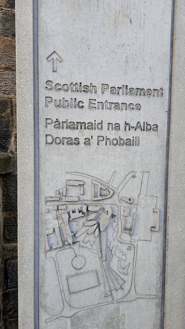 Zuerst erreichen wir das schottische Parlament. Dieses liegt am Fuße der Royal Mile direkt gegenüber vom Holyrood Palace. Ein modernes, fast schon futuristisch wirkendes Gebäude, das 2004 von Königin Elisabeth II. eingeweiht wurde. Beeindruckend ist die „Canongate Wall“, die aus verschiedenen Steinen aus ganz Schottland errichtet wurde. Sie symbolisiert die Einheit in der Vielfalt der schottischen Gesellschaft, unterstützt durch in die Steine eingemeißelten Zitate.