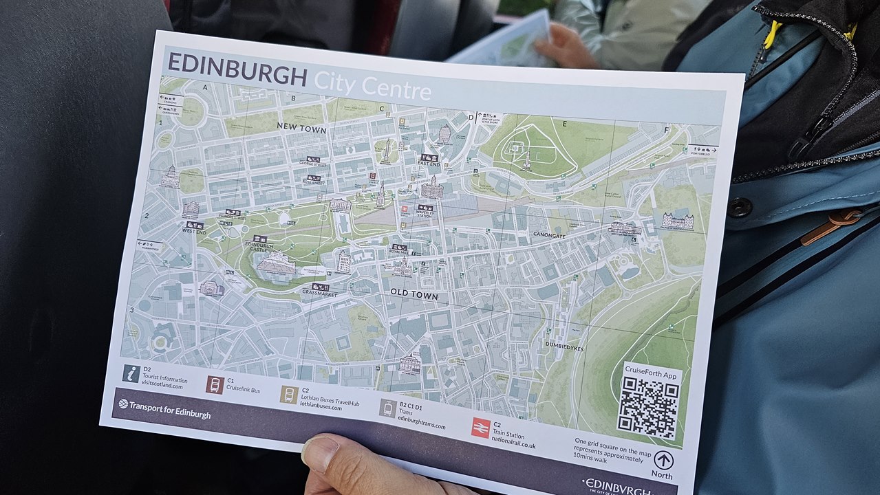 20 Minuten später sind wir am Pier und steigen in den Transferbus X99. Mit diesem haben wir schon gestern gute Erfahrungen gemacht. Die Hin- und Rückfahrt kostet 12 Pfund pro Person, wir bezahlen ganz easy mit Kreditkarte und suchen uns einen Sitzplatz. Eine halbe Stunde später erreichen wir ganz bequem Edinburgh.