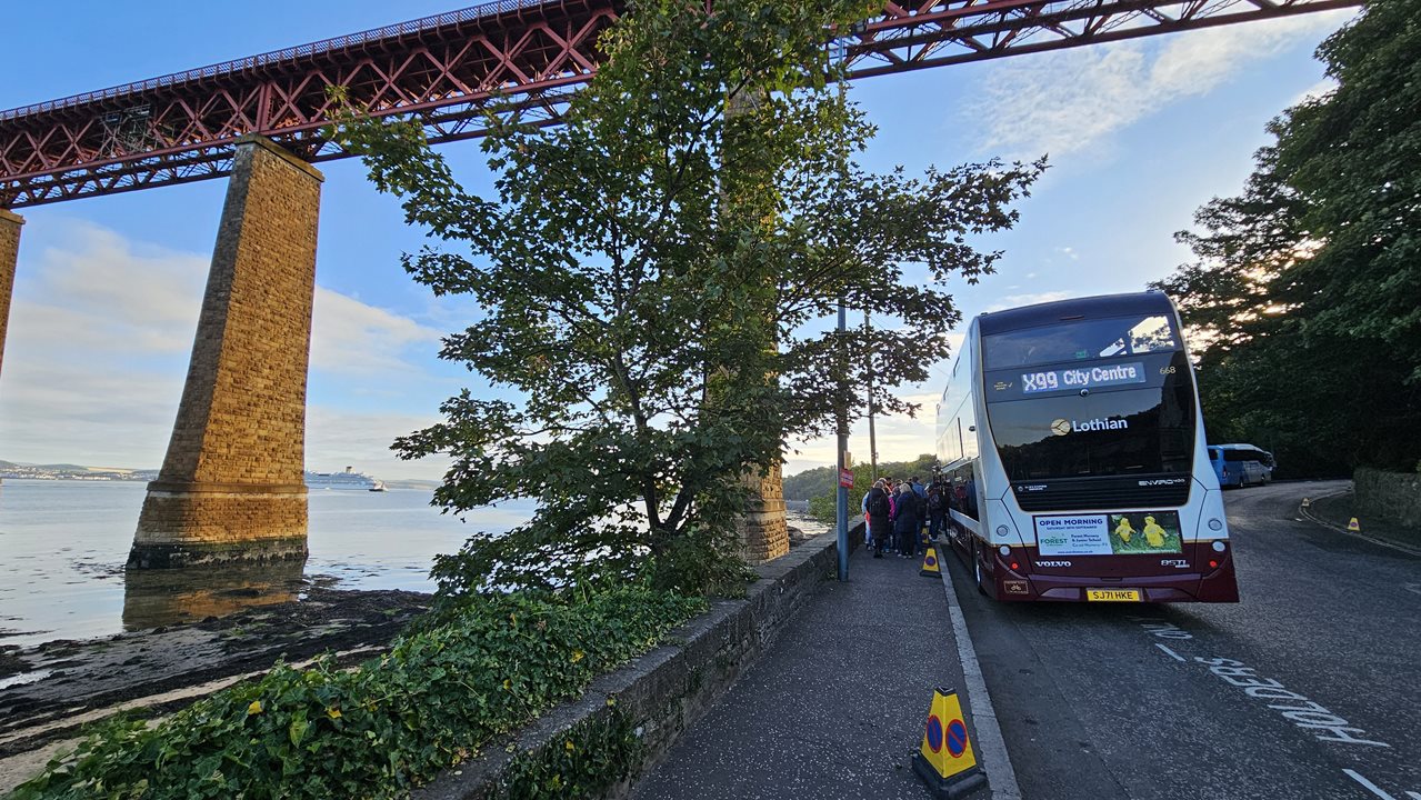 Um 15:10 Uhr sind wir zurück am Transferbus X99, der schon abfahrbereit dort wartet. Schnell die Tickets von heute morgen vorgezeigt und eingestiegen. Fünf Minuten später fährt der Bus los, 30 Minuten später sind wir wieder in South Queensferry. Dieser Transferbus ist echt eine gute Erfindung 🙂 Sehr zu empfehlen.