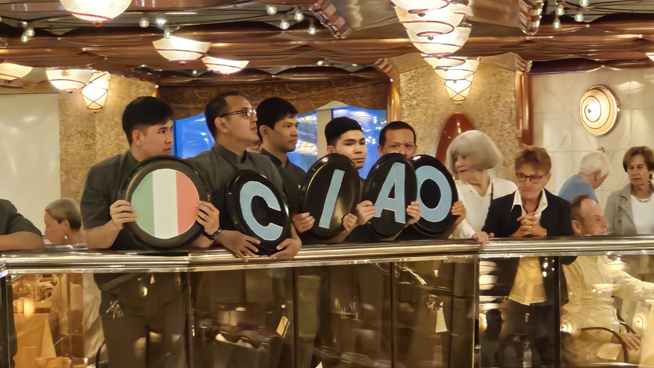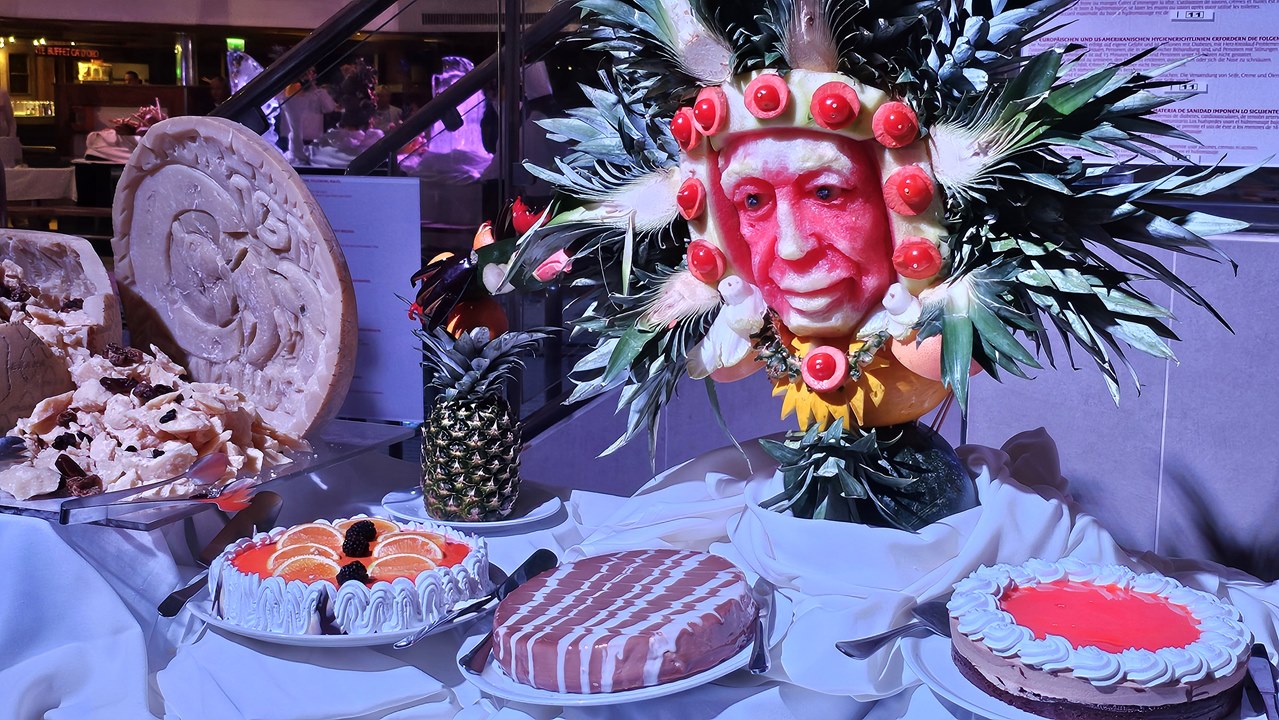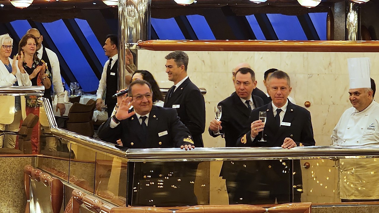 Zwischendurch schaut der Kapitän vorbei und hält eine kurze Rede. Und die Kellner veranstalten eine Promenade durch das ganze Restaurant. Auch hier im Restaurant ist irgendwie immer was los 🙂