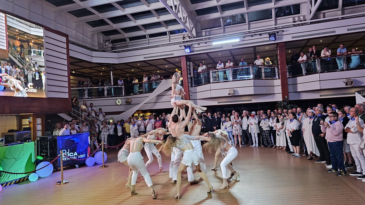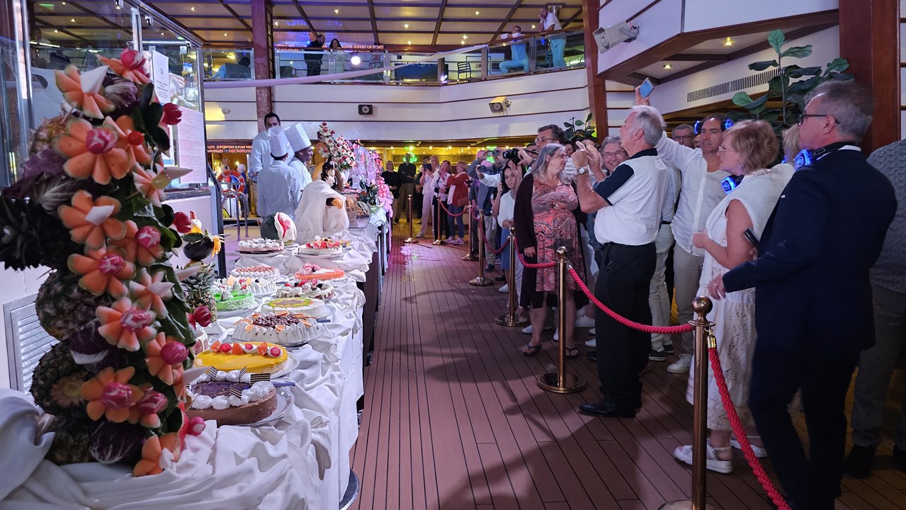 Ein Highlight jagt das nächste: Um 22.45 Uhr startet die White Night mit Silent Party. Eine super Party! Fast alle Gäste sind ganz in weiß gekleidet, das Costa-Team hat ein fantastisches Buffet mit herrlichen Leckereien aufgetischt. Alle sind gut gelaunt, es herrscht eine super Stimmung!