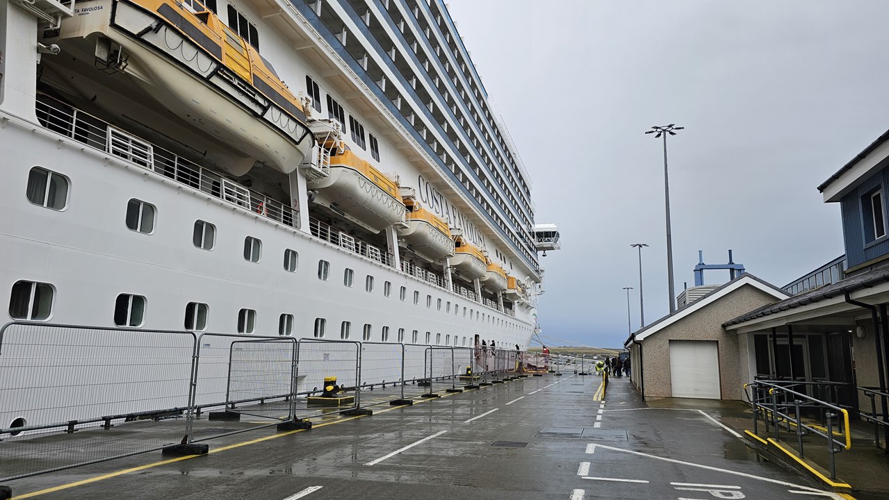 Der Hafen liegt ungefähr 4 Kilometer von der Stadtmitte Kirkwalls entfernt. Daher werden von der Gemeinde kostenlose Shuttlebusse angeboten, die direkt nach Kirkwall fahren. Und natürlich auch wieder zurück 🙂 Diese Alternative wählen wohl die meisten der Kreuzfahrtpassagiere. Das geht soweit, dass man – ähnlich wie beim Tendern – sich für die Zeit zwischen 9 und 11 Uhr Bustickets besorgen muss. Mit soviel Ansturm wird gerechnet.