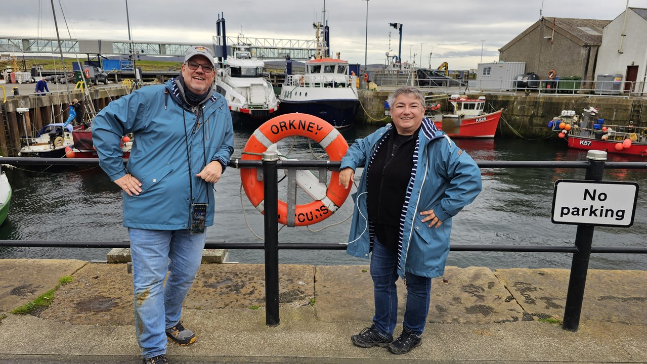 So, das wars dann für heute mit unserem Ausflug. Gegen 16:10 Uhr setzt uns Key wieder am Schiff ab. Perfekt, um 17 Uhr legen wir ab. Wir haben den Tag voll ausgenutzt. Key berechnet uns 80 Euro p.P. für diesen 5-Stunden-Ausflug, das finden wir mehr als fair. Wir haben so viel von den Orkneys gesehen, viel mehr als wir erwartet haben. Und das mit einer so individuellen und tollen Betreuung durch Key. Wir können Key Thomson uneingeschränkt empfehlen!