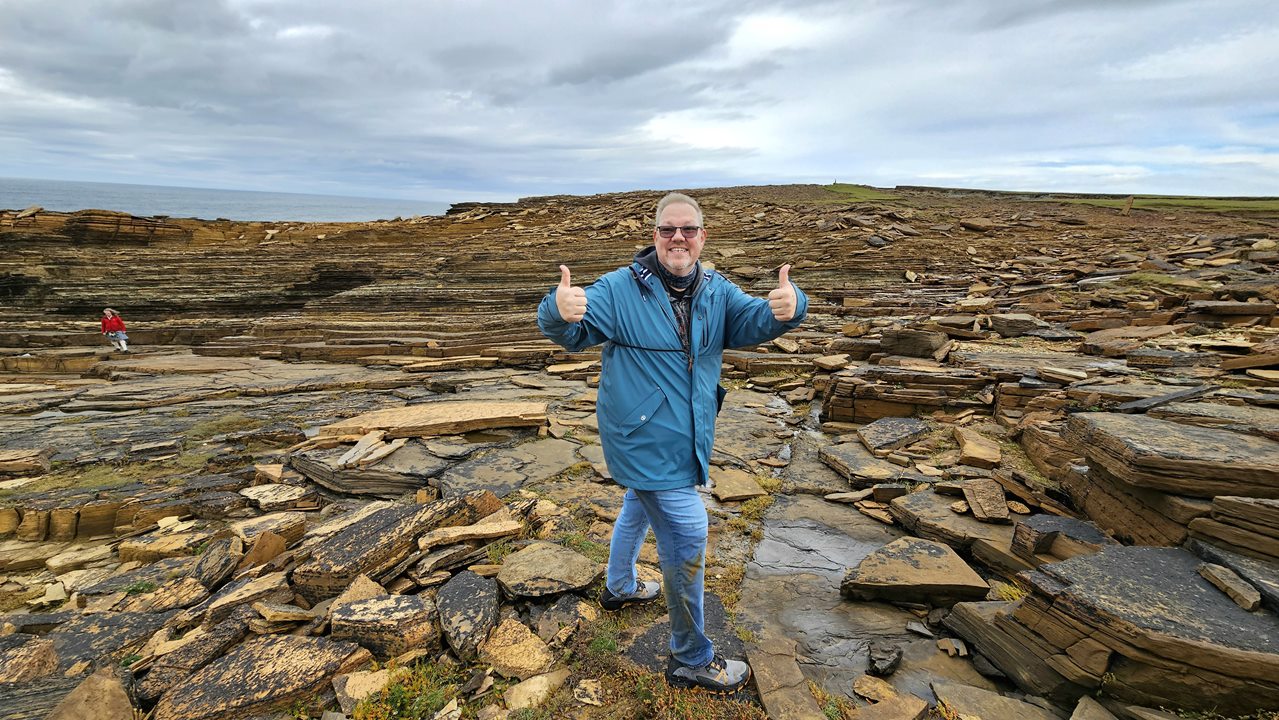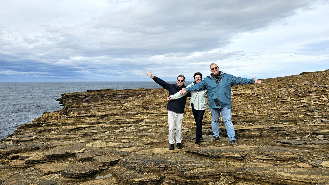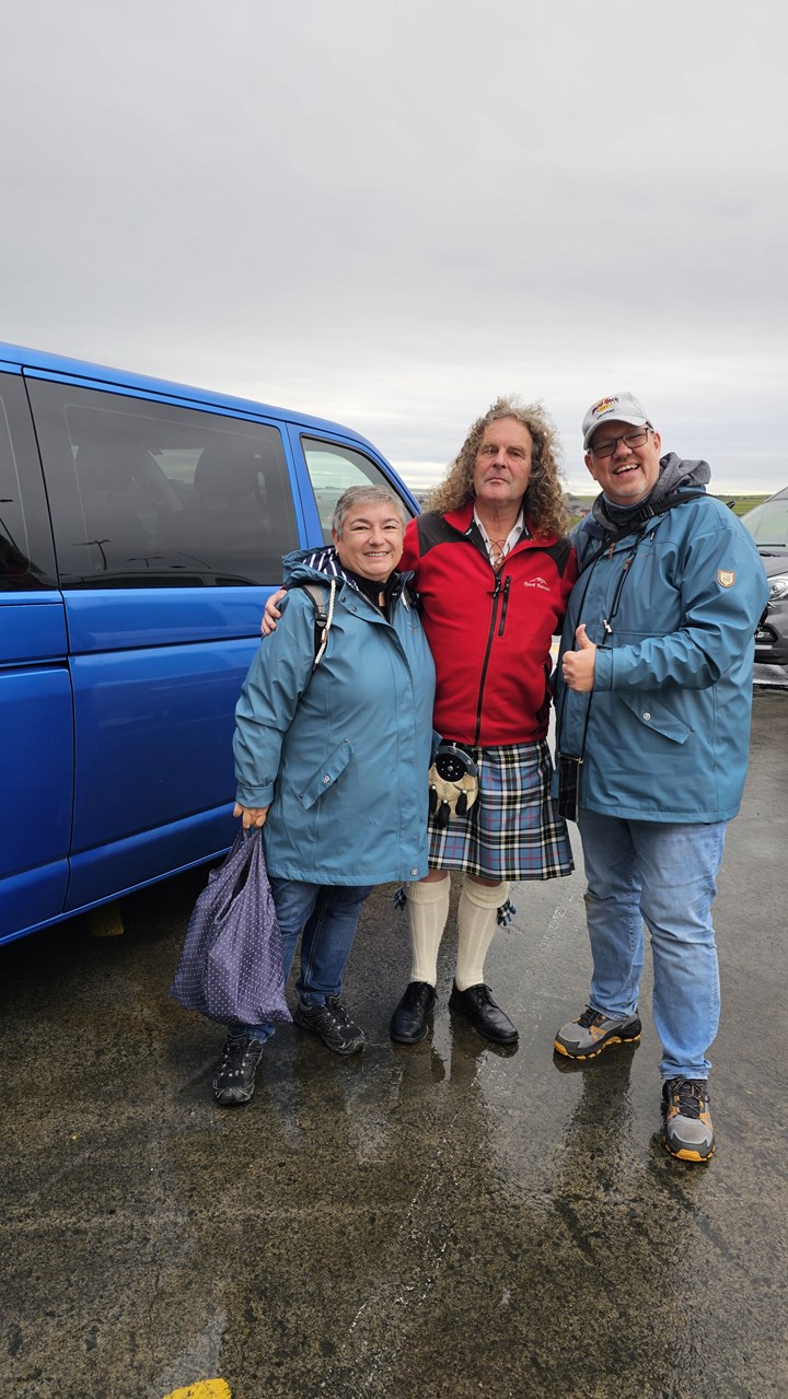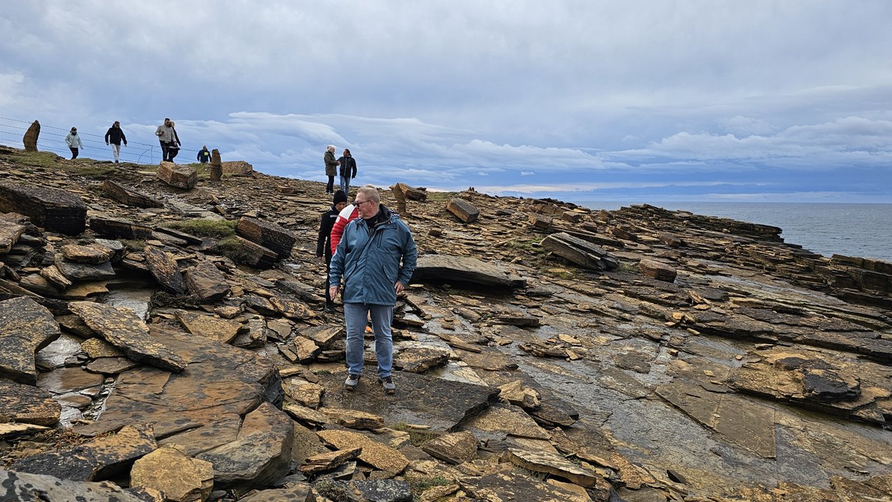 Wir konnten spontan eine Inselrundfahrt mit Key Thomson organisieren. Mit Key waren wir schon in Invergordon unterwegs. Und als er hörte, dass nach Orkney umgeroutet wird, hat er uns und seinen anderen Gästen aus Invergordon eine 6-stündige Tour angeboten. Das haben wir doch gerne angenommen.