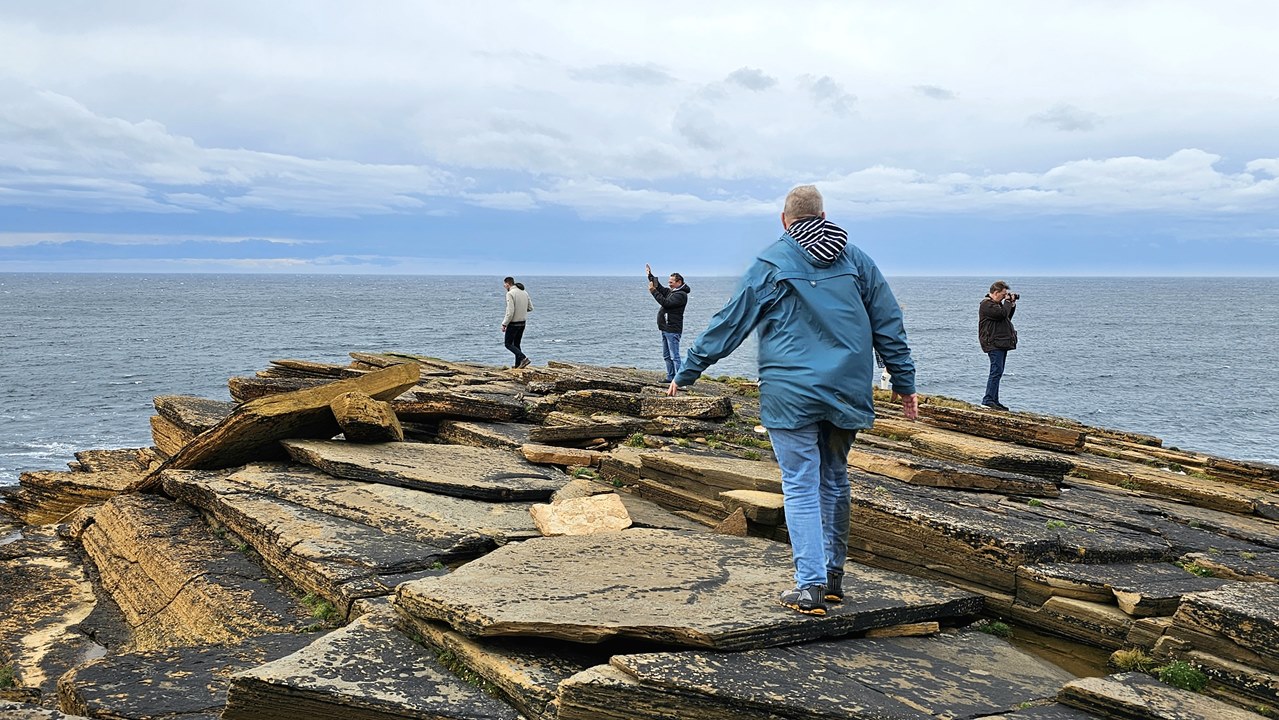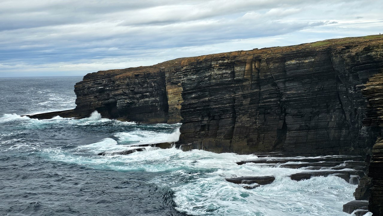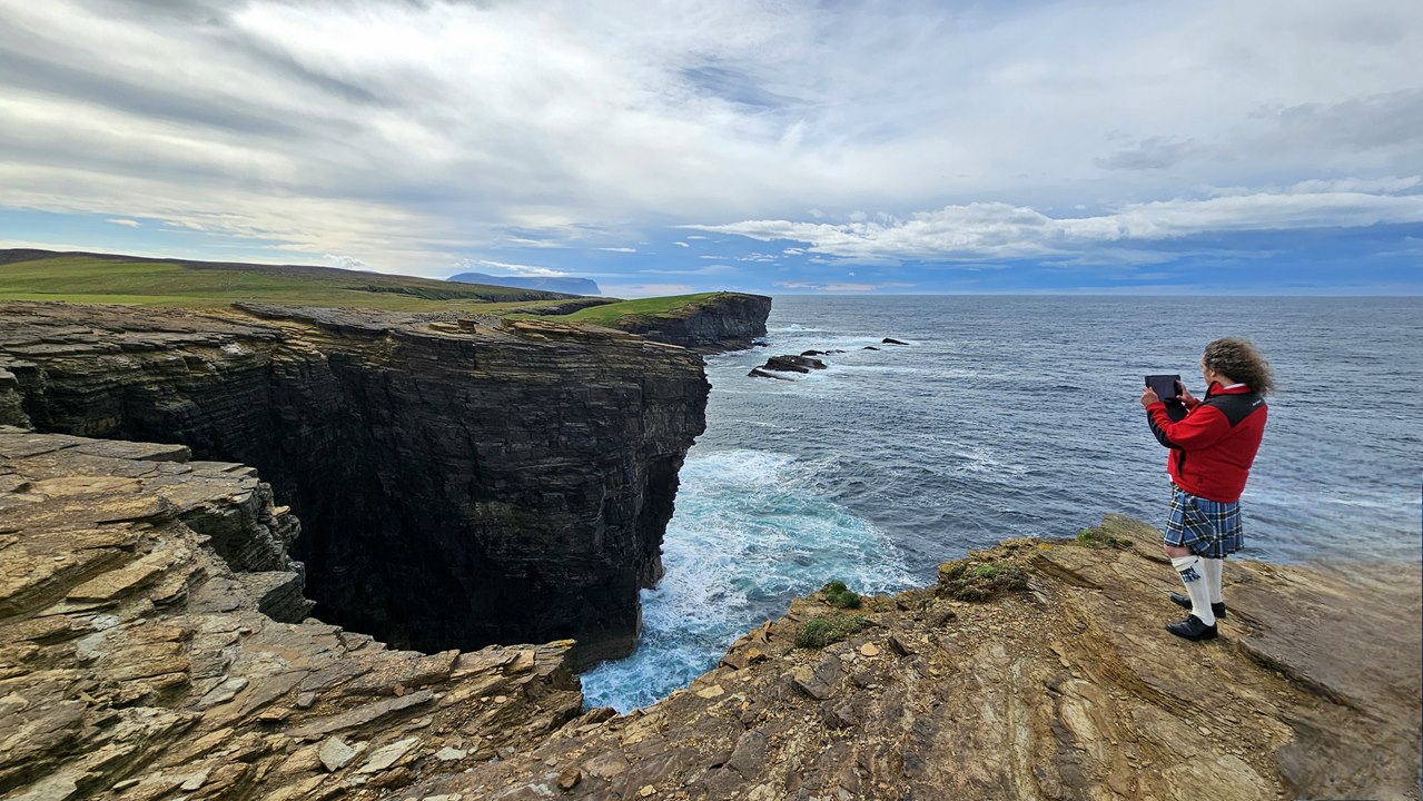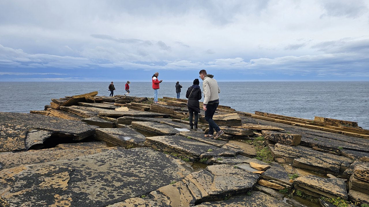 Und dann erleben wir ein fantastisches Naturschauspiel! Key bringt uns zu seinem Lieblingsplatz auf den Orkneys: Die Klippen von Yesnaby. Diese eindrucksvolle Küste befindet sich an der Westküste der Insel Mainland und gehört zu den eindrucksvollsten geologischen Sehenswürdigkeiten der Region.