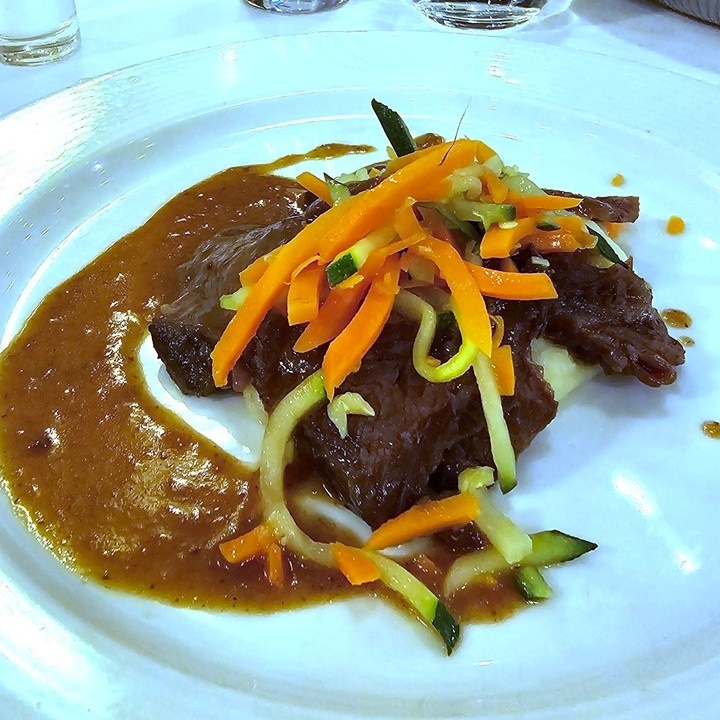 Irgendwie sind wir heute nur am Essen. Um 18:00 Uhr begeben wir uns zum letzten Abendessen in unserem Restaurant Duca d’Orleans. Heute gibt es ein super leckeres Dessert: Mousse von tropischen Früchten und Kokos mit Pistazienstreusel und Himbeergelatine. Mann, ist das lecker! Freundlich fragen wir nach, ob wir noch ein zweites Dessert bekommen können. Und ja, natürlich geht das!