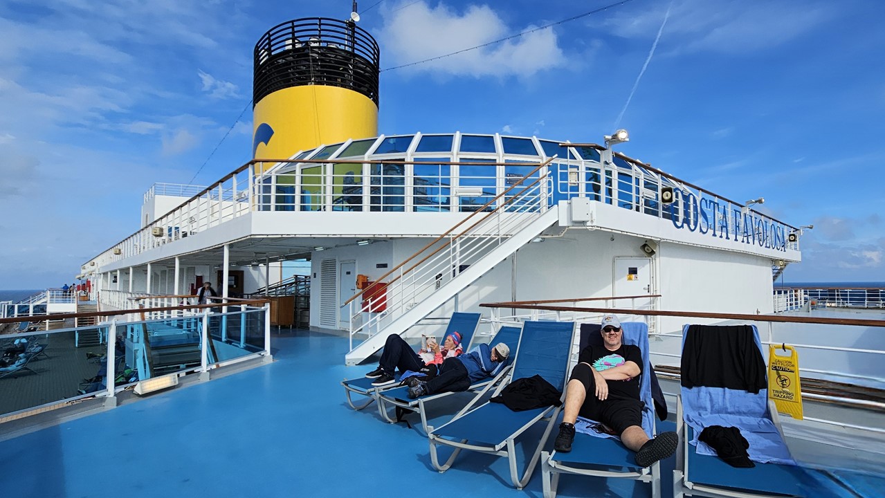 Unser heutiger Tag: Wir chillen während letzten Tag auf Costa Favolosa auf dem sonnigen Pooldeck und genießen das leckere Essen. Ansonsten ist Koffer packen angesagt 🙂