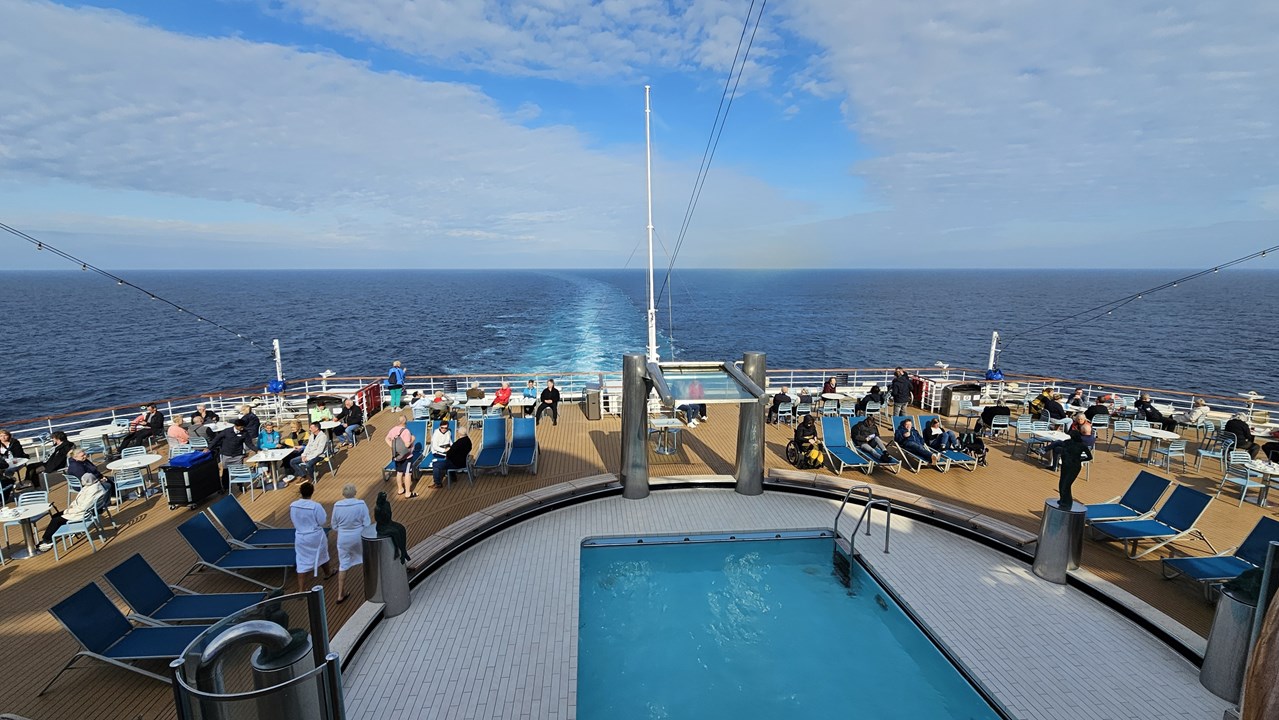 Guten Morgen von unserem letzten Seetag auf dieser Reise. Mal sehen was uns der Tag so bringt. Frühstück fällt erst mal aus. Wir haben gestern lange auf der White Night Silent Party gefeiert und in der Nacht wurde die Uhr eine Stunde vorgestellt. Da fehlt erst mal Schlaf 😉