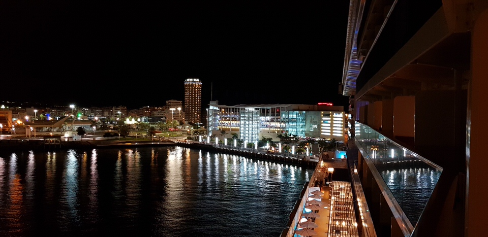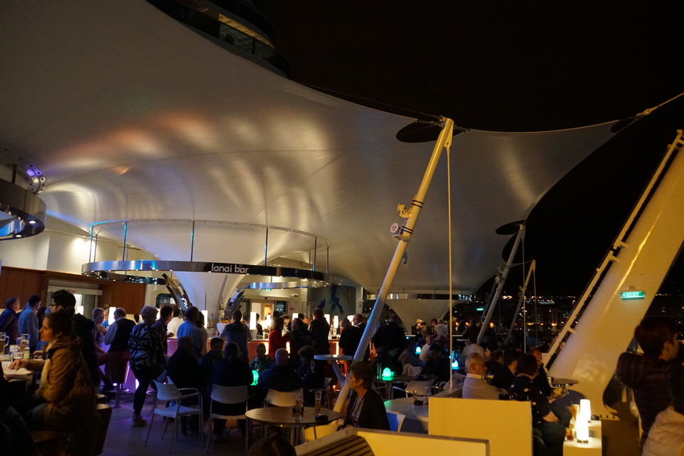 Um 21:00 Uhr heiรt es Kruh Elรถรถrt Kruh Elรถรถrt for Exerzeiร- die Seenotrettungsรผbung steht an und das bedeutet fรผr uns weite Wege: Von unserem Deck 12 zu unserer Musterstation auf Deck 7 im Theatrium. Nach handgestoppten 22 Minuten dรผrfen wir wieder in den Urlaubsmodus wechseln, nachdem wir uns die Sicherheitsinstruktionen angehรถrt haben. Astrid versucht schon mal in der Lanai Bar einen Platz zum Auslaufen zu ergattern und ich bringe die Westen zurรผck auf die Kabine. Diese Idee hatten aber auch viele andereโฆ Es wird echt schwierig, zumal das Wetter mit fast 21 Grad noch sehr angenehm ist.