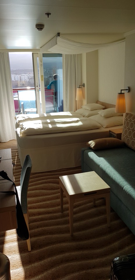 Lichtdurchflutet begrรผรt uns unsere Verandakabine. Schรถn groร und in hellen Farben dekoriert – hier kรถnnen wir es aushalten ๐ Alles ist noch so schรถn neu. Ist aber auch kein Wunder, die Nova ist erst seit 10 Tagen auf See. Also fast eine Jungfernfahrt ๐ Die Aufteilung der Kabine gefรคllt uns sehr gut. Es ist genug Platz im Schrank, das Bad ist angenehm groร und unsere Veranda ist ein Trรคumchen. Richtig viel Platz. Groรes Kino.