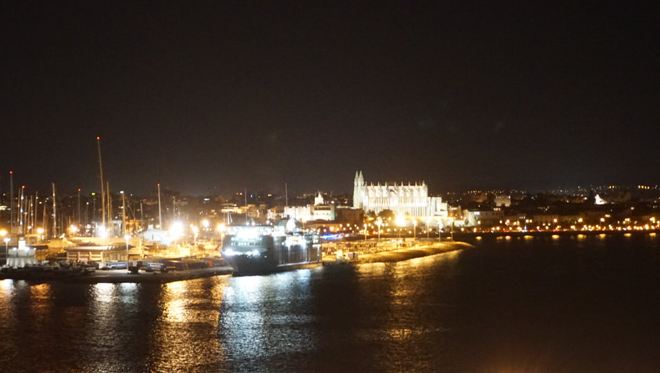 Um 23:10 Uhr ertönt „SAIL AWAY“ und wir legen ab. Langsam geht es vorbei an der sehr schön beleuchteten Kathedrale. Wir nehmen Kurs auf Malaga 🙂