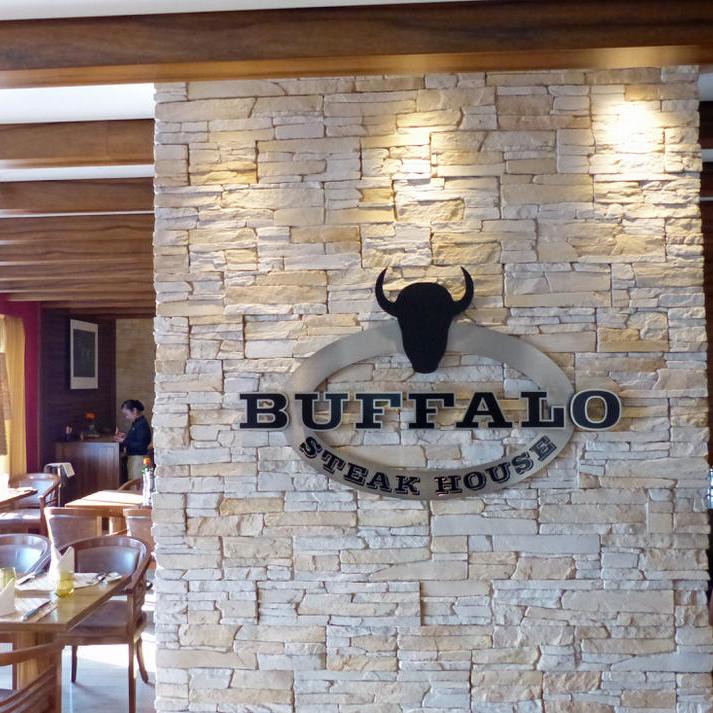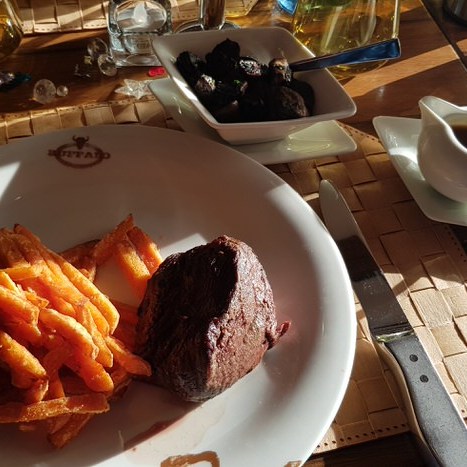 Heute Abend haben wir für unsere ganze Truppe einen Tisch im Buffalo Steak House reserviert, um den wunderschönen Tag ausklingen zu lassen. Und auf den gelungenen Geburtstag von Andi wollen wir auch nochmal anstoßen. Das Essen ist erstklassig. Filet Mignon als Hauptgericht, Vorspeise Spicy Shrimps (da habe ich mich schon die ganze Zeit drauf gefreut), Nachspeise Crème Brûlée für Schatzi und Chili-Schokomousse auf Ananas Carpacchio für mich.