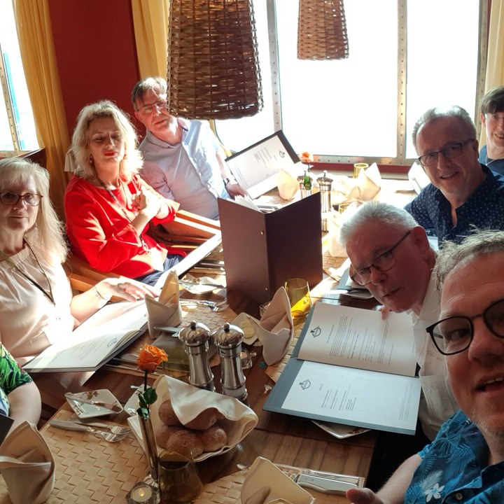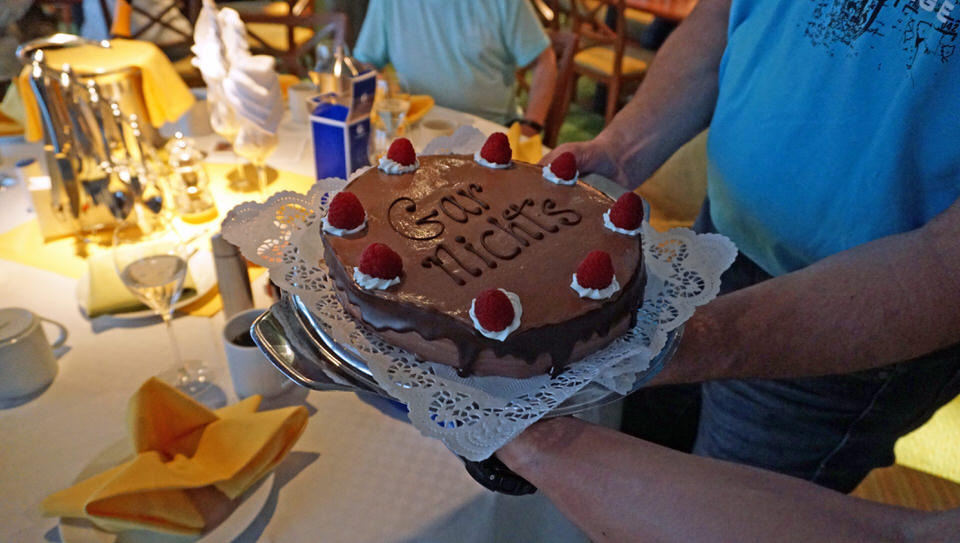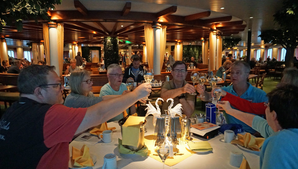 Wir treffen die anderen im Marktrestaurant, wo für uns ein Tisch reserviert ist. Wir werden vom Restaurantleiter zu unserem Tisch geleitet. Er stimmt spontan „Happy Birthday“ an. Sehr lustig, der Mann – hier möchte ich aber direkt die gesamte Besatzung loben. Alle sind unwahrscheinlich freundlich. Das ist echt klasse. Immer am Lachen und ein paar freundliche Worte auf den Lippen.