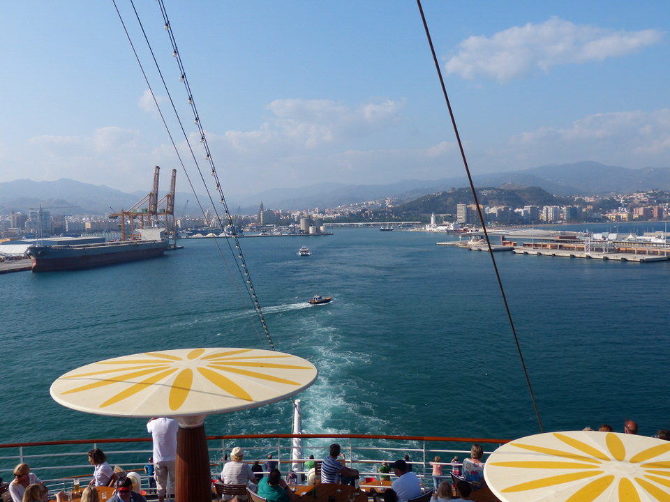 Jetzt freuen wir uns auf die Ausfahrt mit dem Sail away. Dies genießen wir von unserem Lieblingsplatz aus – von der Anytime Bar aus. Ein letzter Blick auf Málaga und wir nehmen Kurs Richtung Cádiz. Wir freuen uns darauf!