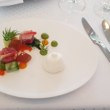 - Gang 1: Yellowfin Thunfisch|Wakame (Alge) |Kaviar |Zitronengras