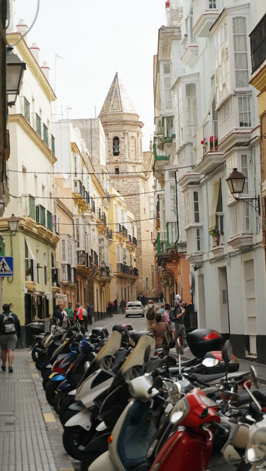 Mac, Simi, Astrid und mich zieht es weiter durch die engen Gassen und wir staunen über die fantastischen Gebäude. Hier ein bisschen Stuck, dort ein starker maurischer Einschlag. Cadiz – im übrigen die älteste Stadt Europas – begeistert uns total. Wir lassen uns einfach treiben, kommen an einer netten Eisdiele vorbei (Heladeria Salon Italiano seit 1940) und können nicht widerstehen. Das Eis geniessen wir an einem der vielen netten Plätze von Cádiz, dem Plaza de San Antonio.