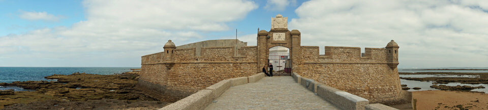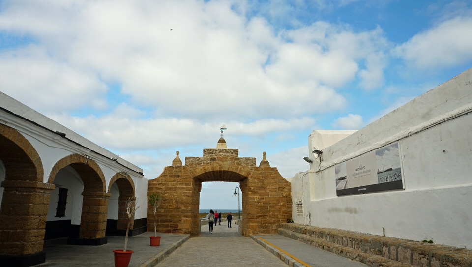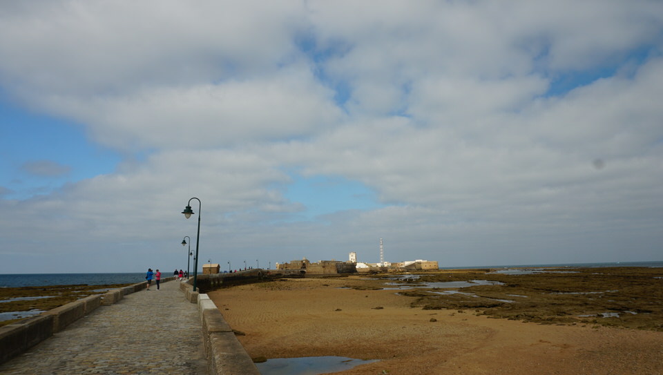 Wir laufen an der Promenade entlang – bis zum „Castillo de San Sebastian“. Die Burg war einst Teil der Festungsanlagen, die die Stadt vor feindlichen Übergriffen schützen sollte und wurde mitten in das Meer hineingebaut. Rundherum vom Meer umgeben, nur durch eine lange Promenade mit der Stadt verbunden, liegt das Castillo auf einer kleinen Felseninsel.