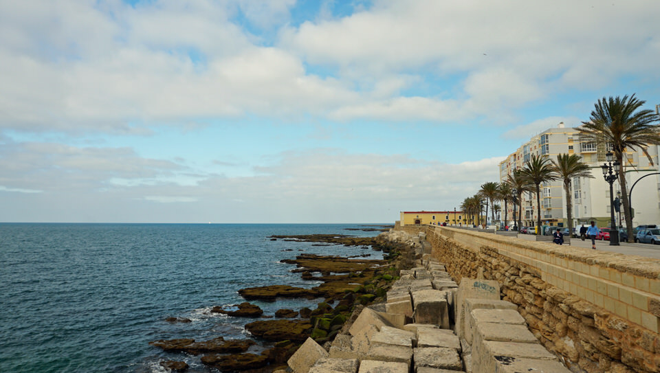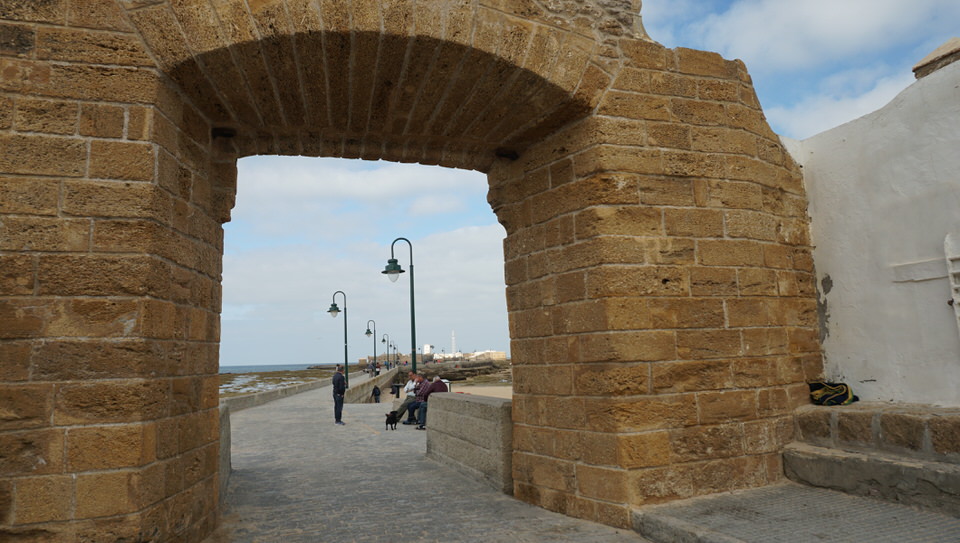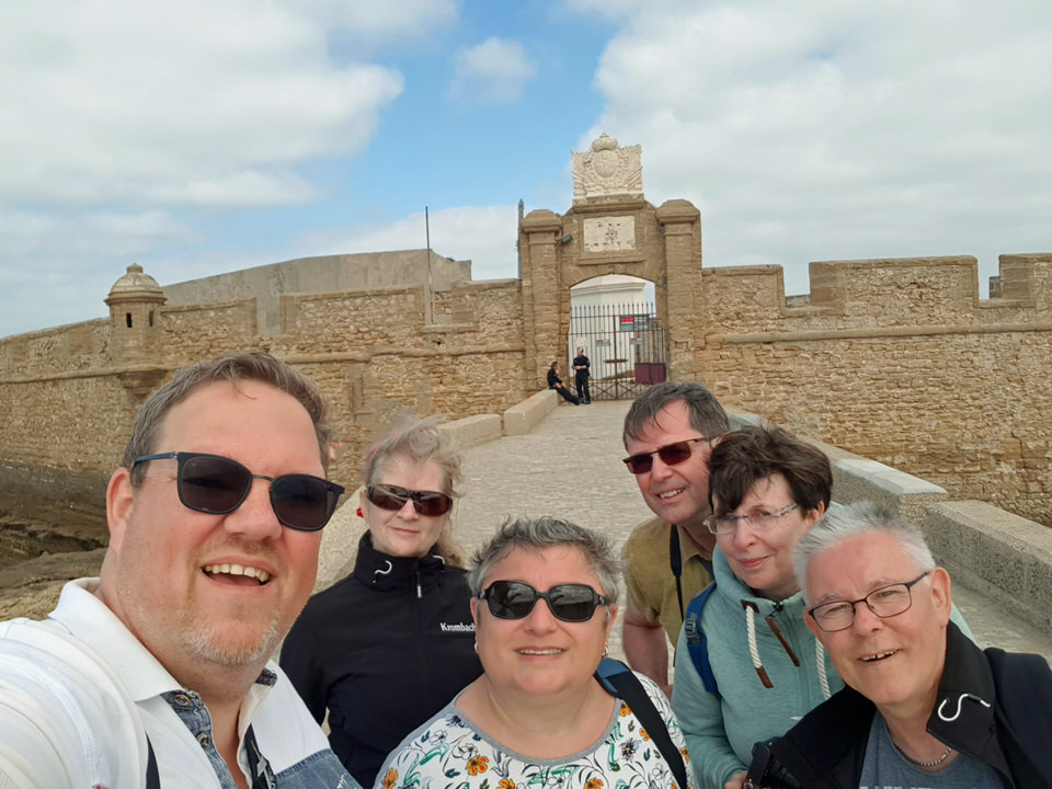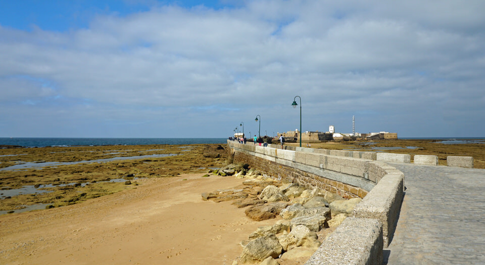 Auf dem Rückweg haben wir einen tollen Blick auf den Haus- und Hofstrand „La Caleta“. Der kleine feinsandiger Strand liegt direkt an der Altstadt von Cádiz, ziemlich genau zwischen den Festungen Castillo de San Sebastián und Castillo de Santa Catalina.