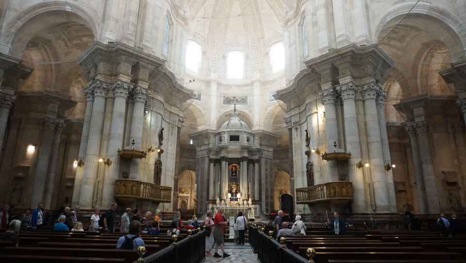 Ahoi Ahoi und Guten Morgen aus Cádiz. Schon bei der Einfahrt können wir die imposante Kathedrale mit goldenem Kuppeldach über den weißen Häusern der andalusischen Stadt sehen. Sehr beeindruckend!