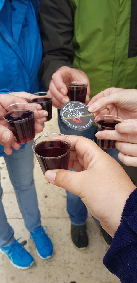 Zum Abschluss lädt Simi uns noch auf einen Abschieds Ginjinha ein. Da kann uns auch der Regen nichts anhaben 🙂 Saúde oder Prosit!