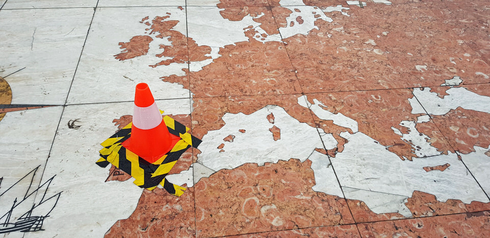 Auf dem Boden vor dem Eingang befindet sich eine Windrose aus Mosaiksteinen. Die Windrose hat einen Durchmesser von 50 Metern und war ein Geschenk der Republik Südafrika. Eine Weltkarte im Zentrum des Mosaiks zeigt die Routen der portugiesischen Entdecker im 15. und 16. Jahrhundert.