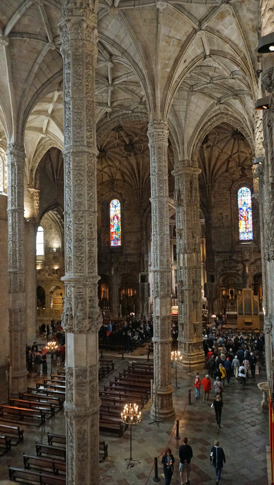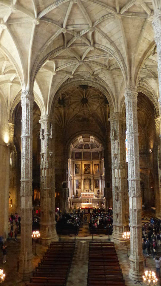 Diese dreischiffige Hallenkirche ist einer der schönsten und ungewöhnlichsten Innenräume Portugals. Aus sechs schlanken Säulen öffnen sich die Rippen wie Palmwedel, um das Netzgewölbe in 25 m Höhe zu tragen. Das Gewölbe mit solch schlanken Bauteilen sicher zu halten ist eine statische Meisterleistung, die Halle ist immerhin 90 m lang und 27 m breit. Die vier stärkeren Vierungspfeiler sorgen dafür, dass das Querhaus von 29 x 19 m Größe ohne weitere Stützen auskommt.