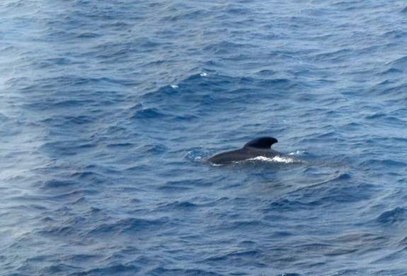 Und wir haben Glück: Plötzlich tauchen direkt neben uns eine Schule mit Delfinen auf! Herrlich, diese Tiere in freier Wildbahn zu beobachten. Die Delfine begleiten uns eine ganze Weile, bevor sie seelenruhig am Horizont verschwinden.