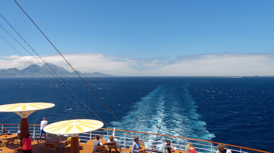 Unser heutiger Tag: Heute ist chillen angesagt 🙂 Während wir durch die Meerenge von Gibraltar fahren, sonnen wir uns auf dem Pooldeck und sehen sogar Delfine! Besonderes Highlight: Ein Fotoshooting am Bug von AIDAstella 🙂
