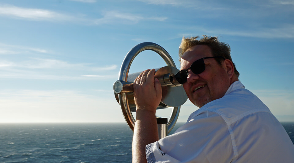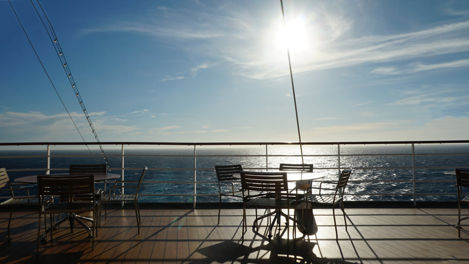 Das Wetter sieht immer noch gut aus und es zieht uns in die Anytime Bar, einer unserer Lieblingsplätze an Bord. Und werden fast weg geweht – oh Mann, ist das windig. Super sonnig, aber windig. Wir schnappen uns Kuscheldecken und geniessen de Sonne.