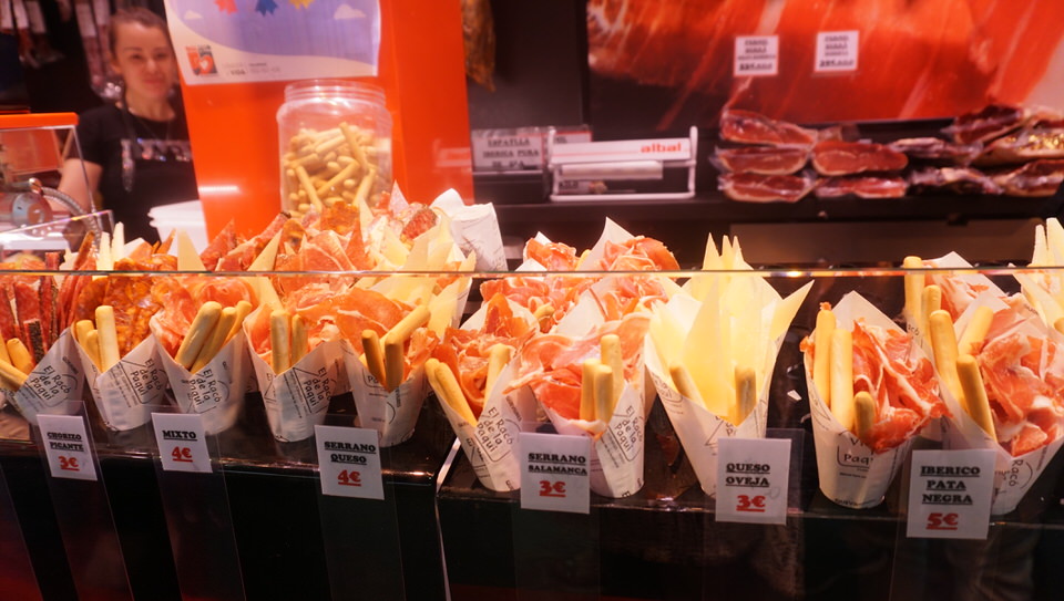 Zurück auf den Ramblas steht ein Besuch beim berühmten Markt Mercat de la Boqueria an. Wir schaffen es kaum in die Markthalle, so überlaufen ist es. Unmengen an Menschen wollen gleichzeitig in die Halle. Es macht nicht wirklich Spaß dort rumzustromern.