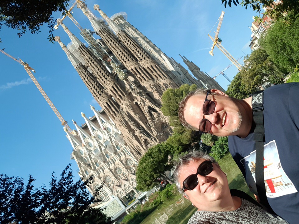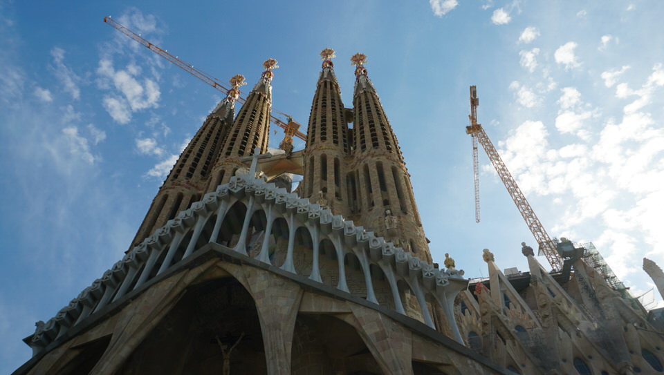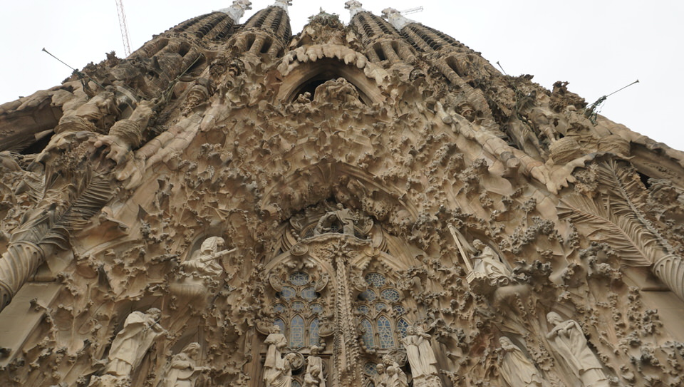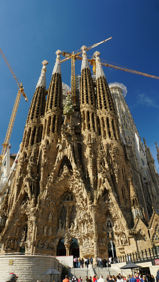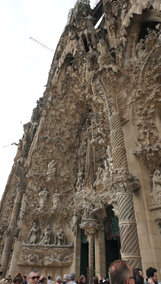 Einfach gigantisch! Vor uns erhebt sich majestätisch die Sagrada Família. Über 100 Meter hoch ist das Eingangsportal mit der Geburtsfassade sowie die vier bereits fertiggestellten Türme. Der Mund steht uns offen 🙂
