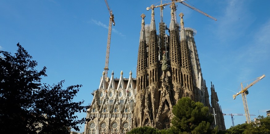Der Bau wurde übrigens schon 1882 begonnen. Das Ende der Bauarbeiten ist für 2026 zum 100. Todestag von Gaudí geplant. Dann soll die Kirche, deren Bau nur über Spenden und Eintrittsgelder finanziert wird, fertiggestellt werden.
