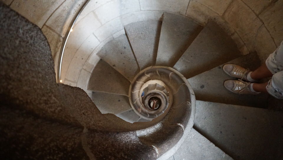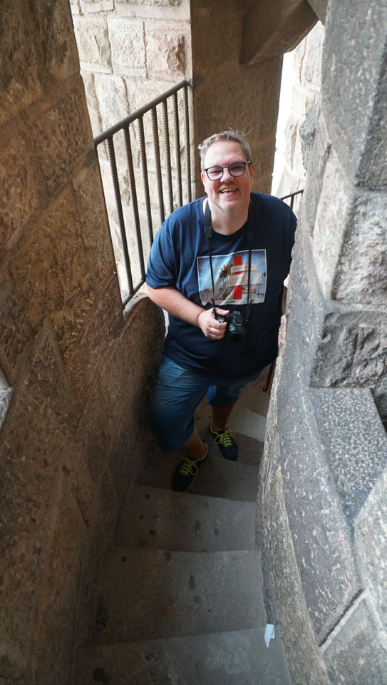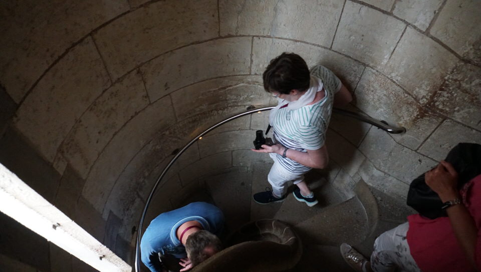 Nun geht’s wieder runter. Den Rückweg müssen wir über knapp 300 Treppenstufen antreten. Immer schön rund und rund und rund… Da kriegt man ja den Drehwurm 🙂
