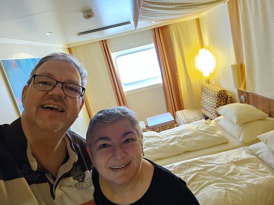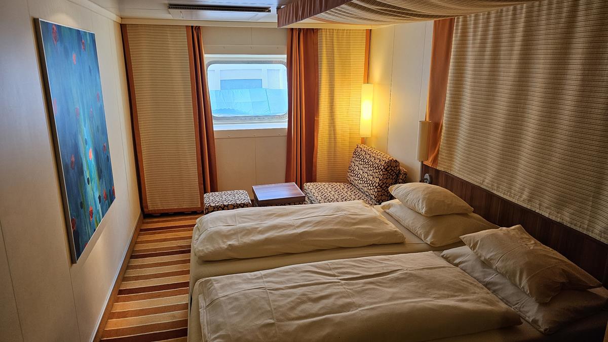 Eine Meerblickkabine – ja, keine Balkonkabine dieses Mal. Aktuell sind die Preise für Kreuzfahrten und Urlaube im Allgemeinen enorm gestiegen. Und für den Preisunterschied von 1.000 Euro pro Person zwischen Balkon- und Meerblickkabine gönnen wir uns lieber unsere Ausflüge auf dieser Tour.