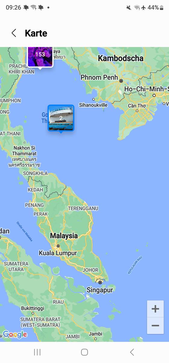 Nächste Etappe: 1.016 Seemeilen (1.882 Kilometer) bis Port Klang/Kuala Lumpur/Malaysia
