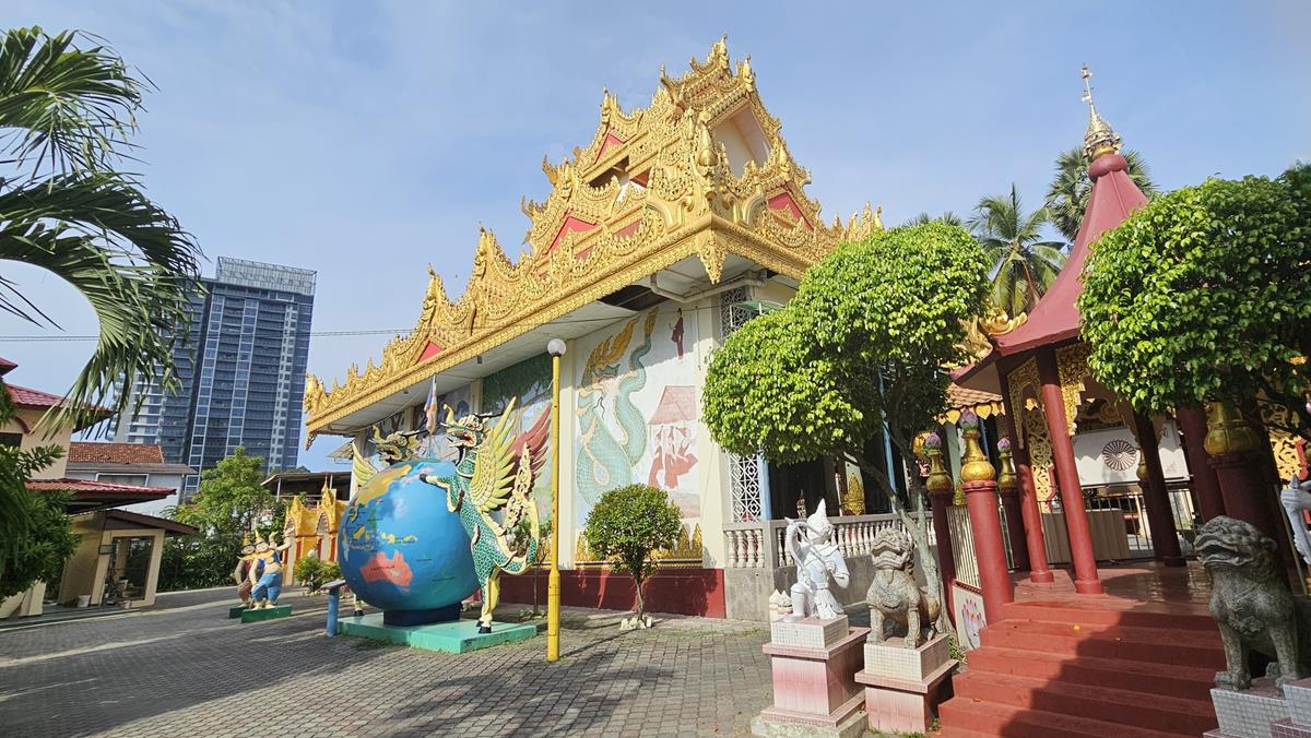 Der Wat Chayamangkalaram Tempel ist der größte thailändische Tempel auf der malaysischen Insel Penang und wurde 1845 von der thailändischen Gemeinde in George Town errichtet.