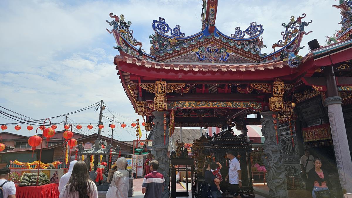 Unser nächstes Ziel ist das Khoo Kongsi Clanhaus. Auf dem Weg dorthin entdecken wir einen chinesischen Tempel: Den Hock Teik Cheng Sin Tempel. Dieser taoistischer Tempel ist dem taoistischen Wohlstandsgott Tudigong gewidmet, der die Hauptgottheit des Hokkien-Volkes in Penang ist. Der Tempel wurde irgendwann zwischen 1845 und 1867 erbaut, so genau weiß man das wohl nicht 😉 Der Tempel liegt so versteckt, dass hier kaum Touristen herumlaufen. Aber er wird rege von Einheimischen genutzt.