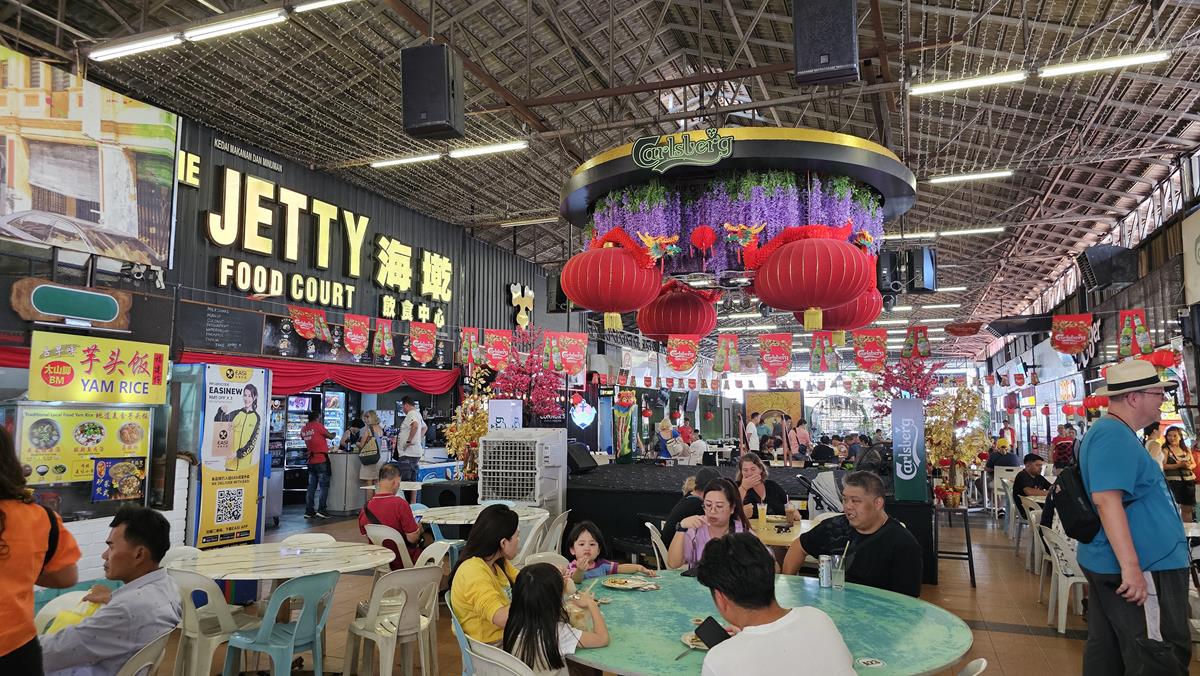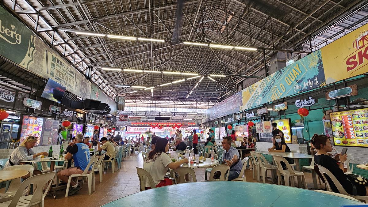 Und nun haben wir uns erstmal eine Pause verdient. Wir kehren in einem typisch asiatischen Food Court – auch Hawker Center genannt – ein und verschaffen uns erst mal einen Überblick über die angebotenen Speisen. Unzählige kleine Garküchen oder Grill-Stände befinden sich in diesem Indoor-Street-Food-Markt. Die Küchen sind am Rand des Centers angeordnet und in der Mitte befinden sich Tische und Stühle. Diese können von allen Kunden gemeinsam genutzt werden. Hier herrscht reges Treiben, es ist Mittag und viele Einheimische und asiatische Touristen nehmen ihre Mahlzeit ein.