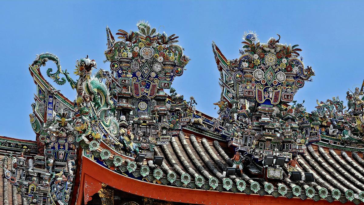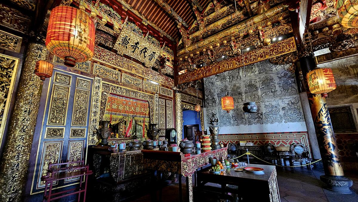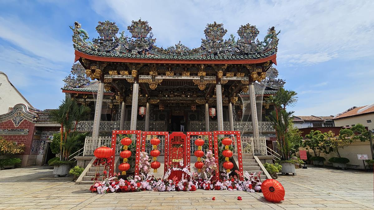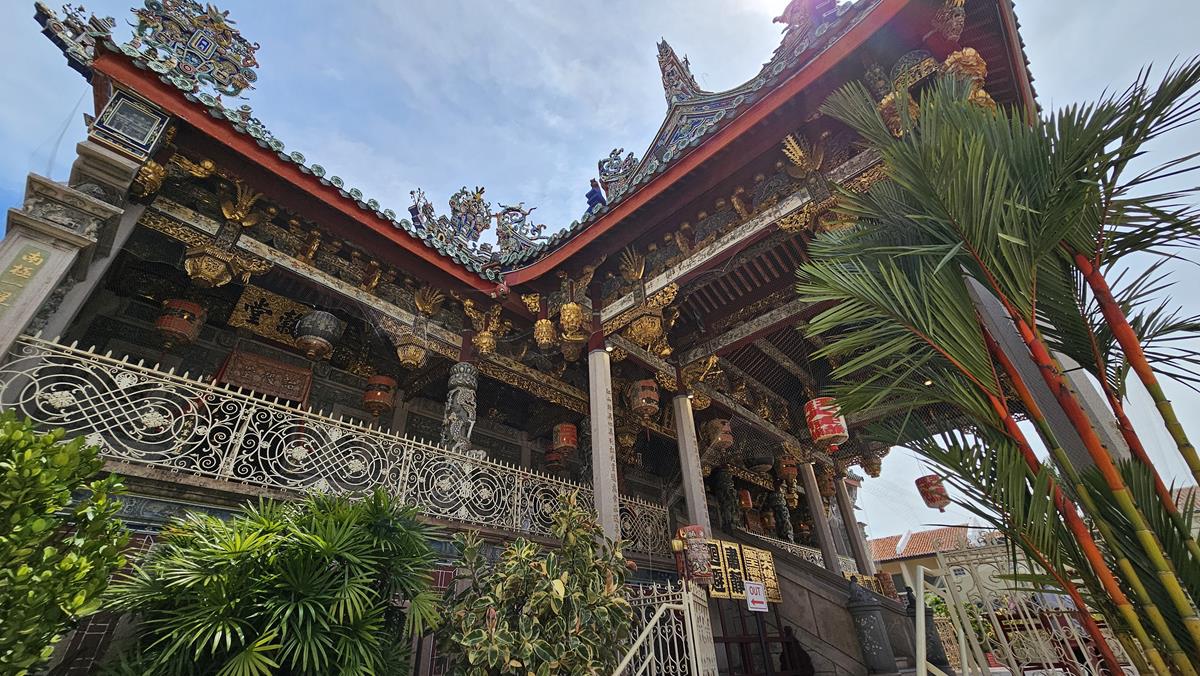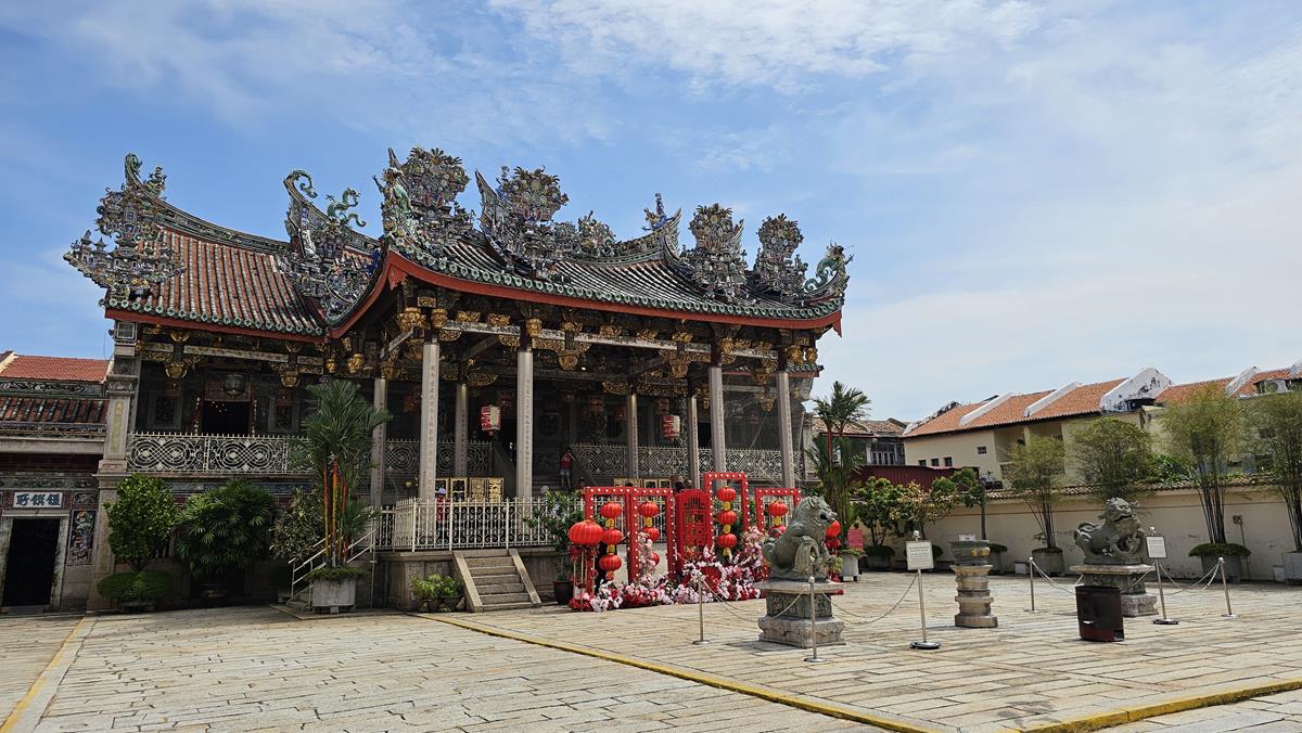 Ganz in der Nähe steht das Khoo Kongsi Clanhaus. Das Gebäude ist ein echtes Highlight. Es ist kein Tempel, sondern eines der größten chinesischen Clanhäuser von Penang. Das Clanhaus ist eindrucksvoll verziert mit den verschiedensten Schnitzereien, Drachen, Phönixen, mysteriösen Tieren und verschiedenen Szenen aus chinesischen Legenden.