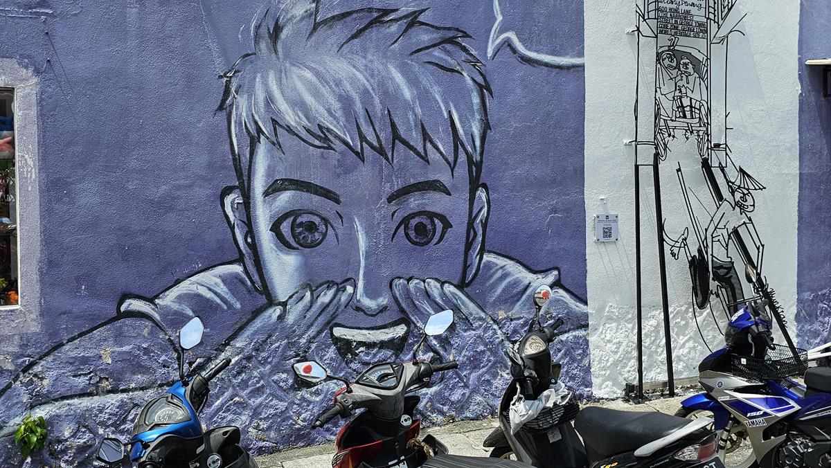 Unsere Runde führt uns weiter durch die Altstadt. Immer wieder begegnen uns tolle Gemälde an Häuserwänden. Hier ist wirklich ein El Dorado für Graffiti und Street Art. Und wir haben sich nicht alle entdeckt. Wenn wir irgendwann mal wieder nach Penang kommen, werden wir eine Street Art-Tour machen 🙂
