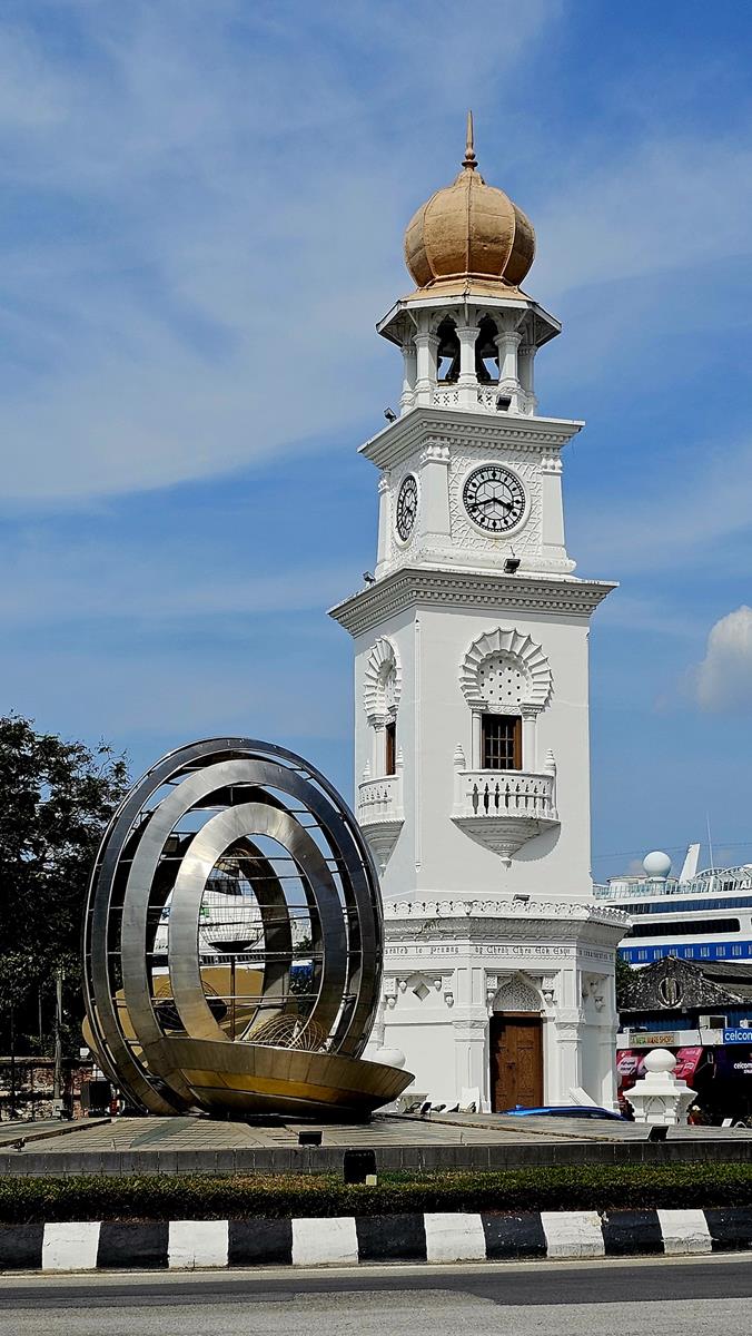 Der Uhrenturm, der zum sechzigjährigen Kronjubiläum von Queen Victoria errichtet wurde befindet sich in unmittelbarer Nähe des Penang Cruise Terminals. Jetzt ist es nicht mehr weit zum Schiff.