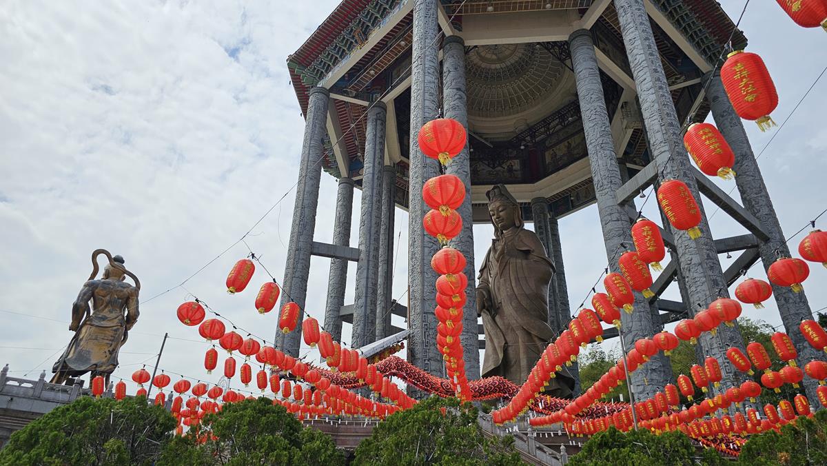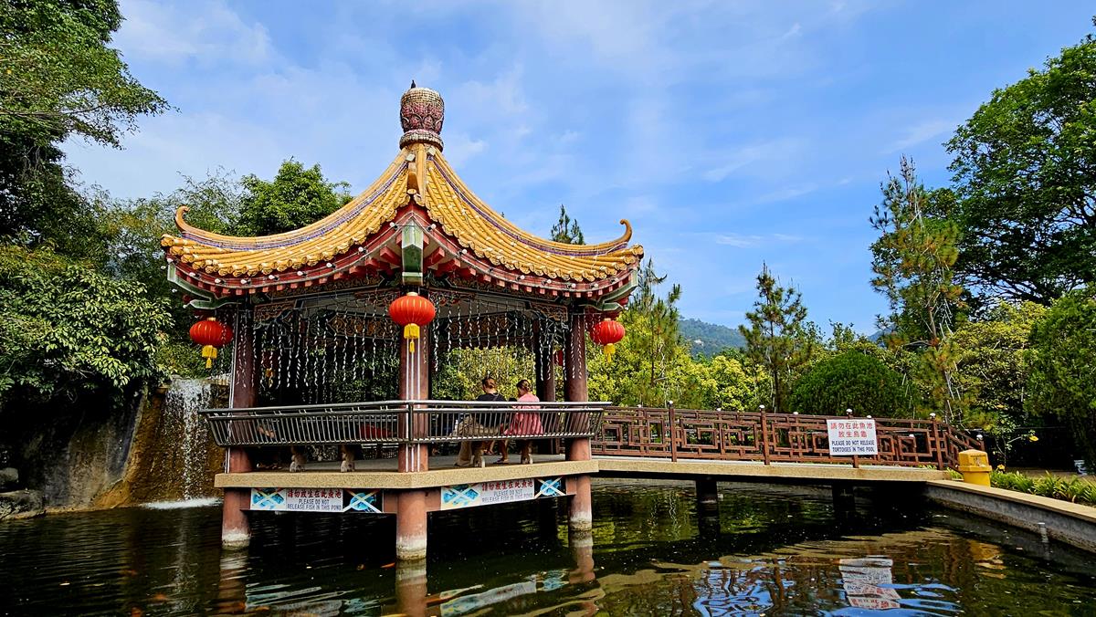 Der Tempelkomplex besteht aus drei Bereichen. Wir befinden uns gerade am unteren Bereich mit dem Parkplatz und der Talstation der Zahnradbahn. Auf dem mittleren Bereich liegen die Gebetsräume, der Pavillon, eine schöne Gartenanlage und die berühmte Pagode der 10.000 Buddhas. Auf der höchsten Erhebung des Hügels steht im oberen Bereich die riesige Kuan Yin Statue. Von hier bietet sich den Besuchern eine tolle Panorama-Aussicht über Penang.