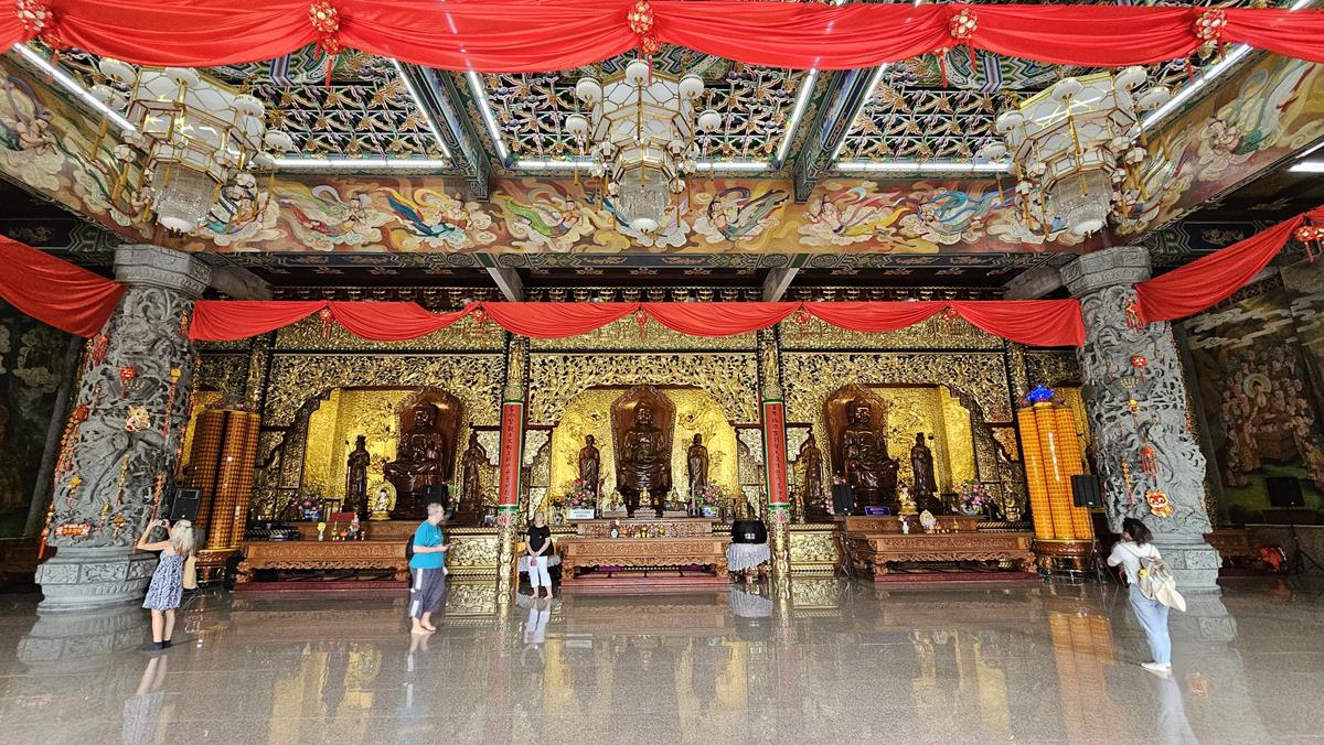 Es gab hier früher fünf große Clans, die jeweils ein Clan-Haus gebaut haben. Damit wurde der Erfolg ihrer Familie präsentiert. Von den 5 Kongsi-Clan-Häusern in Penang ist Khoo Kongsi das am aufwendigsten dekorierte. Von innen sieht es einfach majestätisch aus.