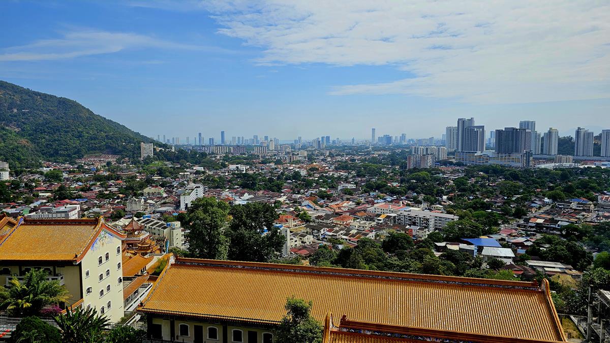 Von hier oben haben wir einen tollen Panoramablick über Penang bis nach George Town. Sehr lohnenswert!