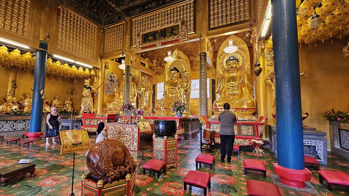 Das Herzstück des farbenfrohen Tempels ist die Pagode der Zehntausend Buddhas. Die siebenstöckige Pagode wurde 1930 erbaut und vereint diverse Baustile verschiedener buddhistischer Länder: Der achteckige chinesische Grundriss, die typisch thailändische Mittelebene und die birmanische Kronen-Kuppel. Die 30 Meter hohe Pagode besticht durch ihre 10.000 Buddha-Statuen aus Alabaster und Bronze.