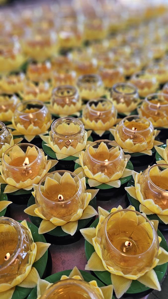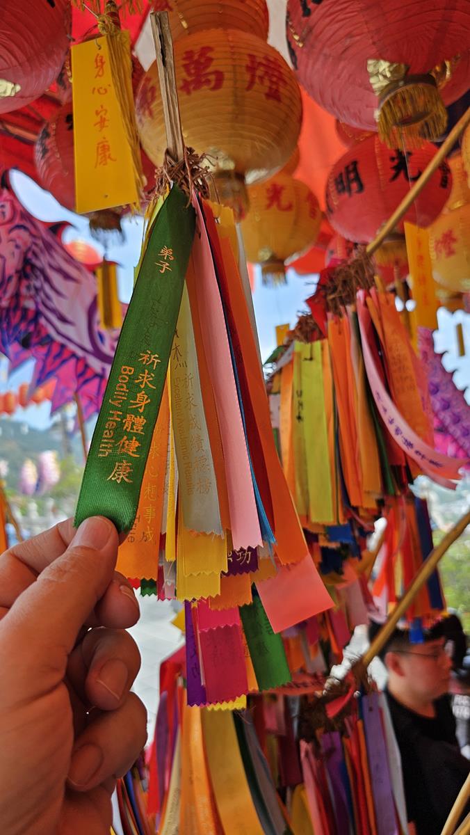 Neben den Wishing Ribbons und dem Wunschbaum sehen wir weitere Opfergaben in dem Tempel wie duftende Räucherstäbchen und unzählige Kerzen und bunte Lampions.
